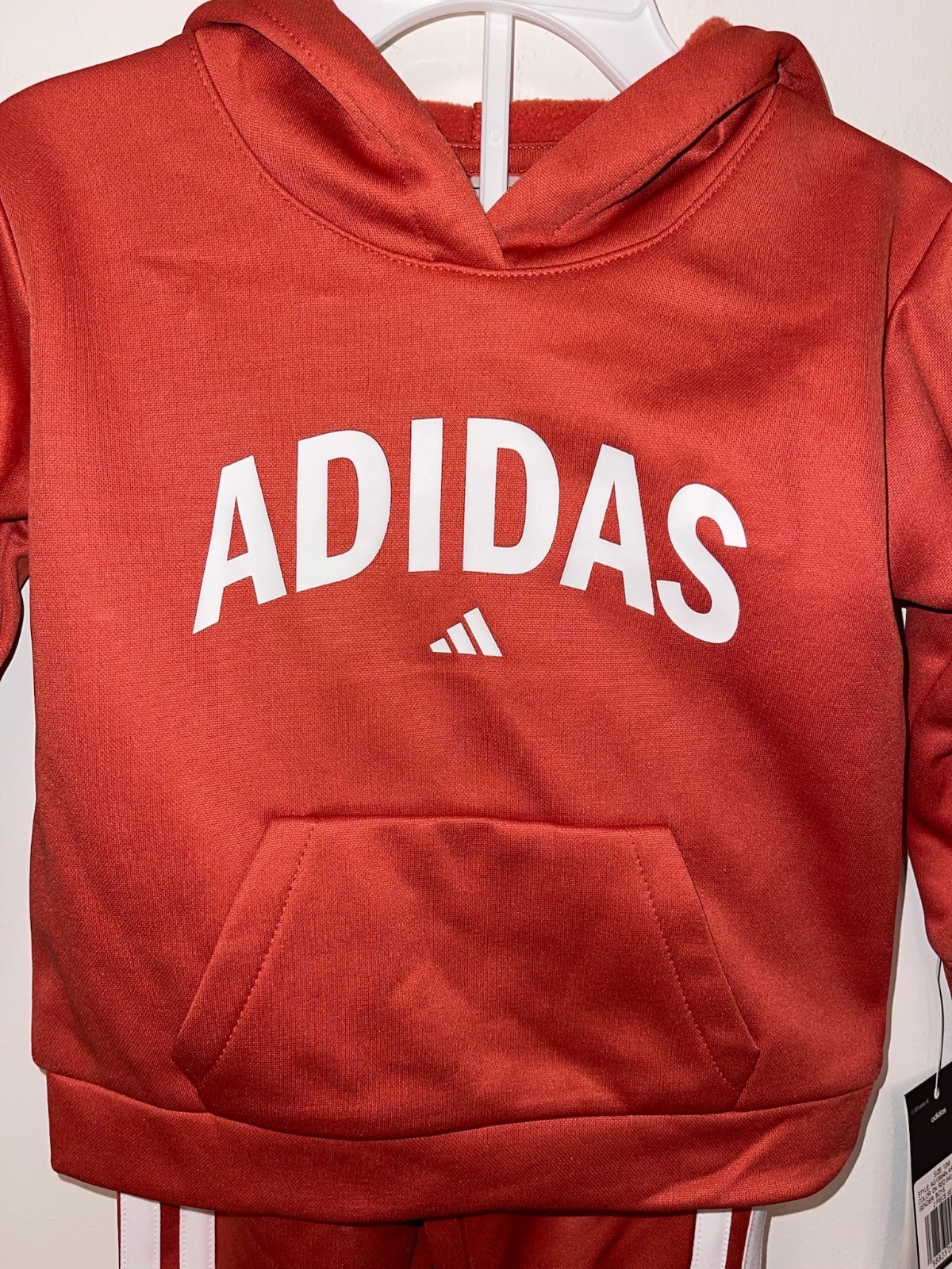 Adidas 12M Unisex Red Two Piece Hooded Drawstring Sweatsuit Set
