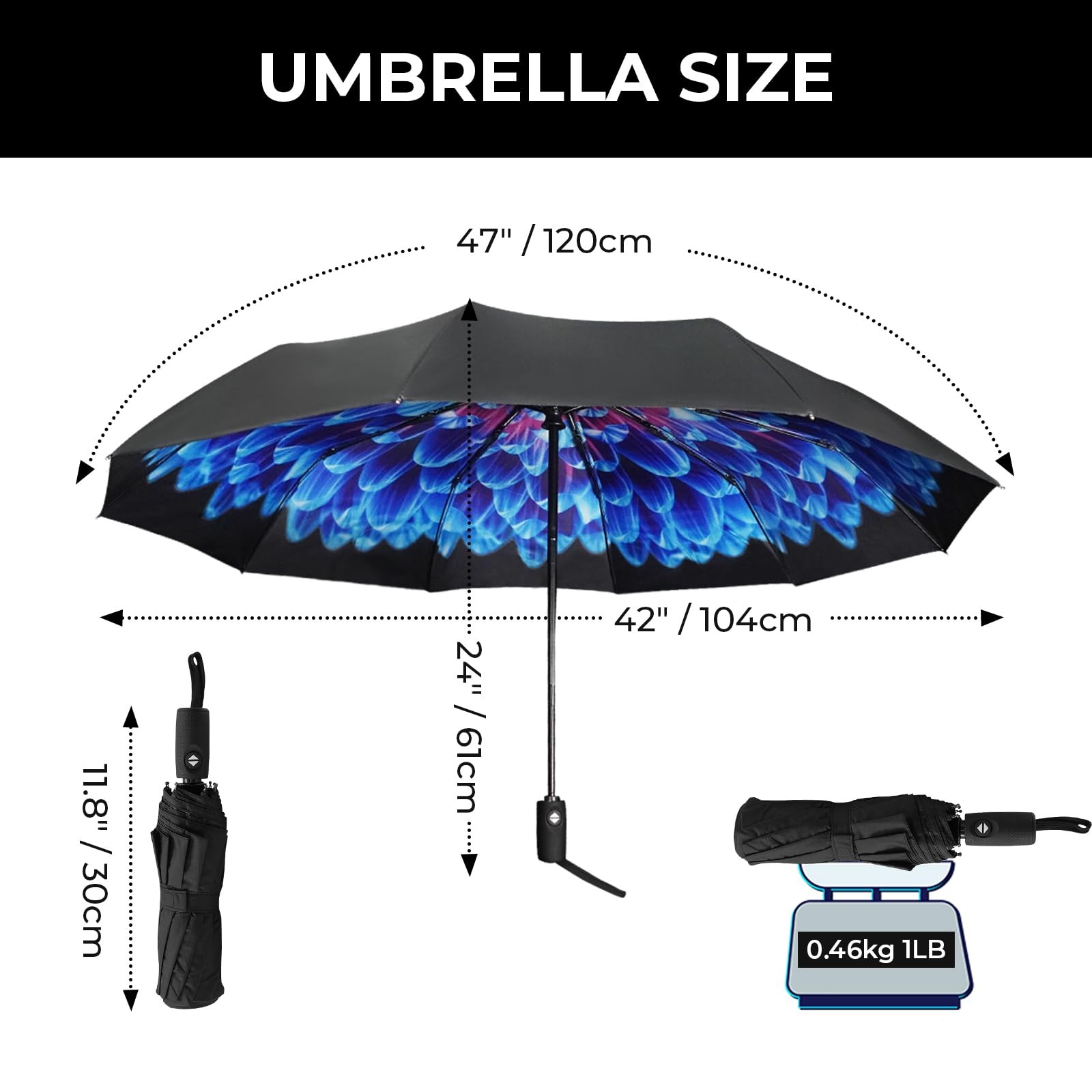 Compact Travel Umbrella, Automatic Open/Close Windproof Umbrella, 10 Fibergla...