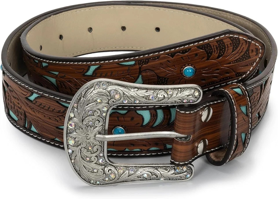 Western-Belts for Women, Men-Belt with Rhinestone Buckle-Belts, Turquoise Carved