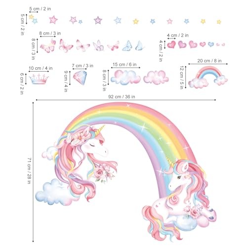 Rainbow Unicorn Wall Decals Rainbow Butterflies Clouds Unicorn Wall Stickers
