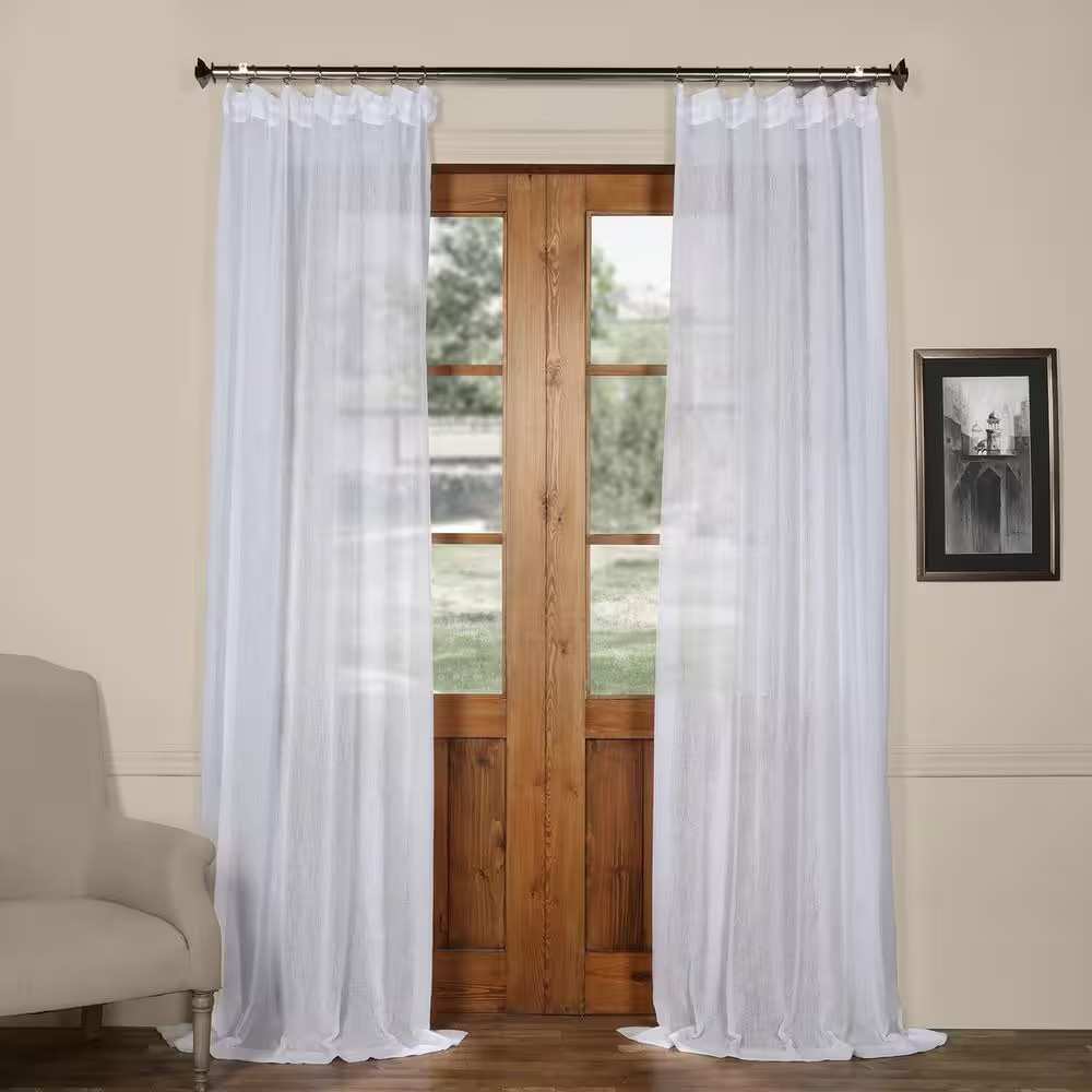 Aspen White Patterned Faux Linen Sheer Curtain - 50 In. W X 96 In. L Rod Pocket