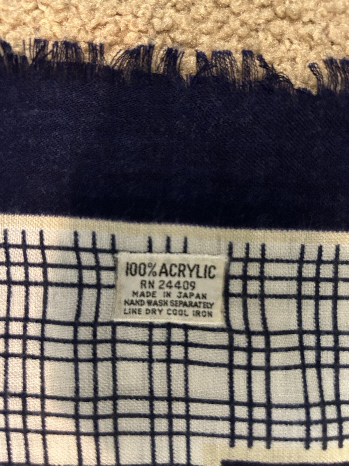 как выглядит Red and Blue Plaid Unfinished Hem Square Scarf 27" Made in Japan Vintage фото