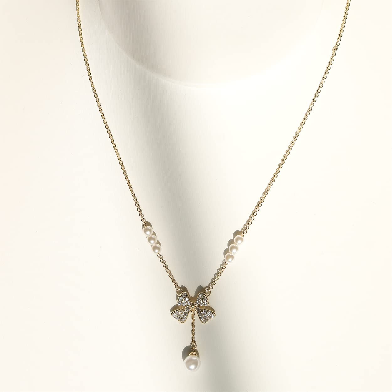 Cute Bow Pendant Dainty Pearl Drop Y Necklace for Women Prom Gift