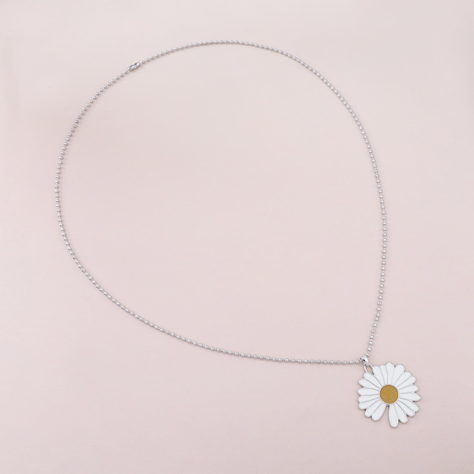 Boho Daisy Flower Pendent Necklace Long Flower Necklace White Daisy Necklace Cha