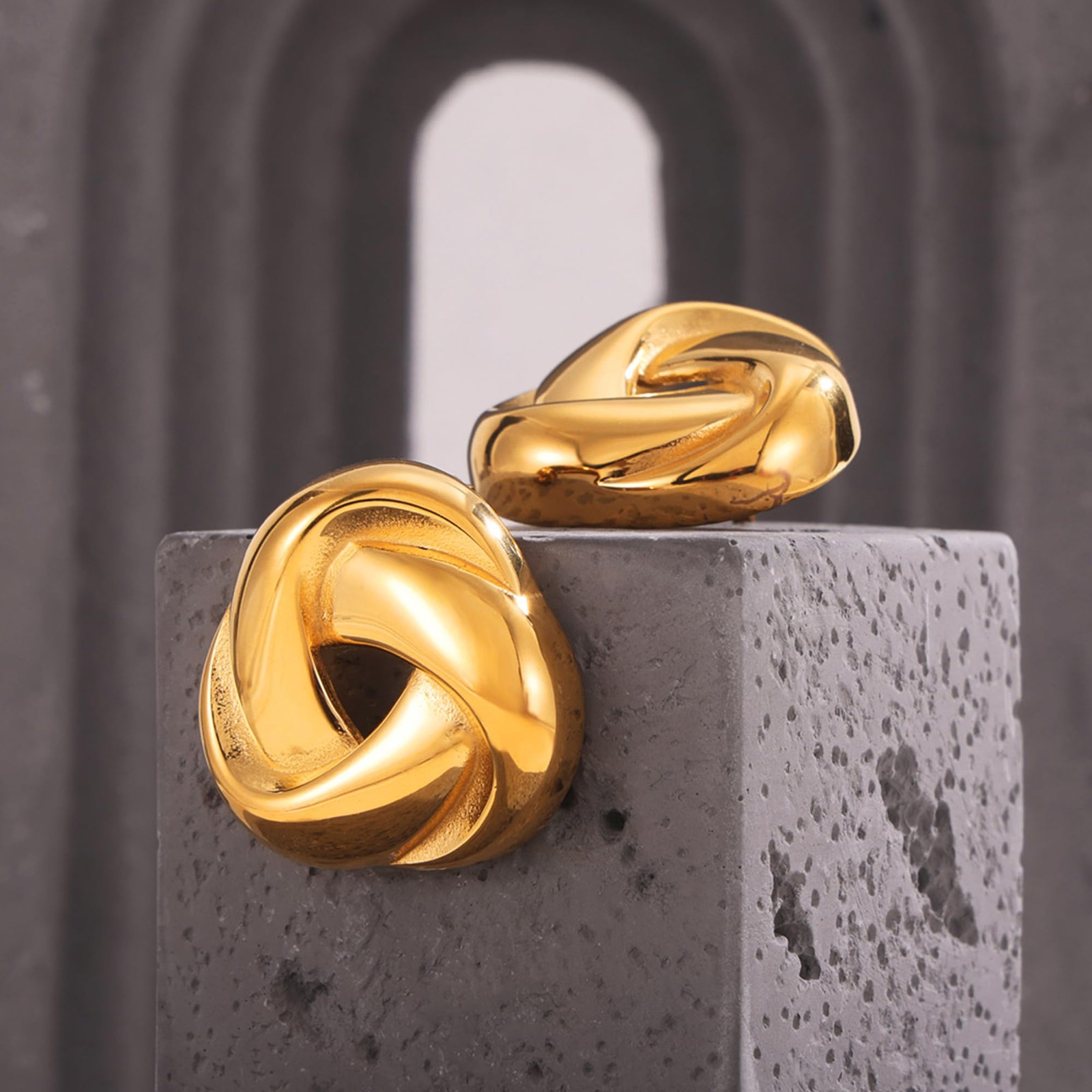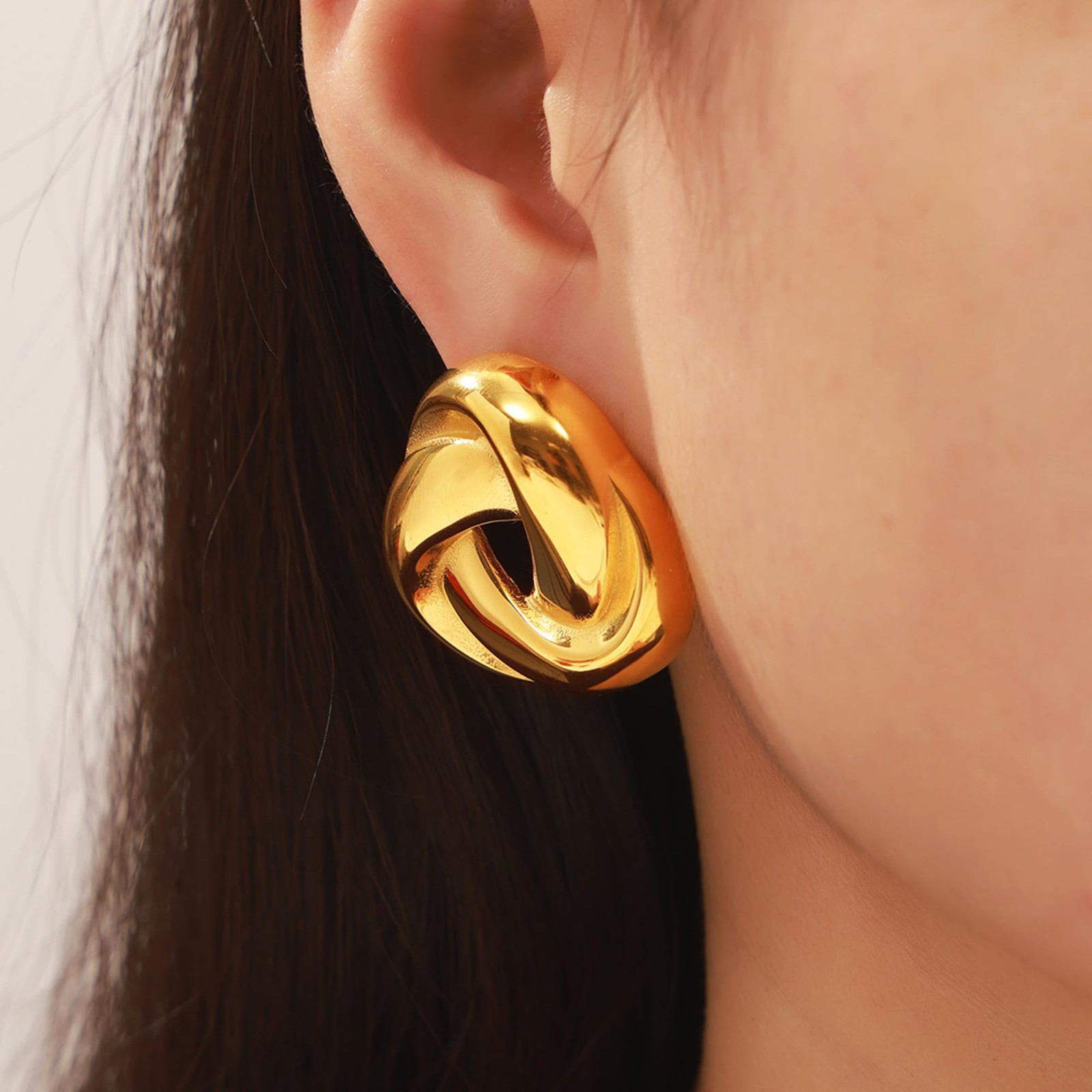Chunky Gold Love Knot Stud Earrings for Women, Trendy Statement Twisted Triangle