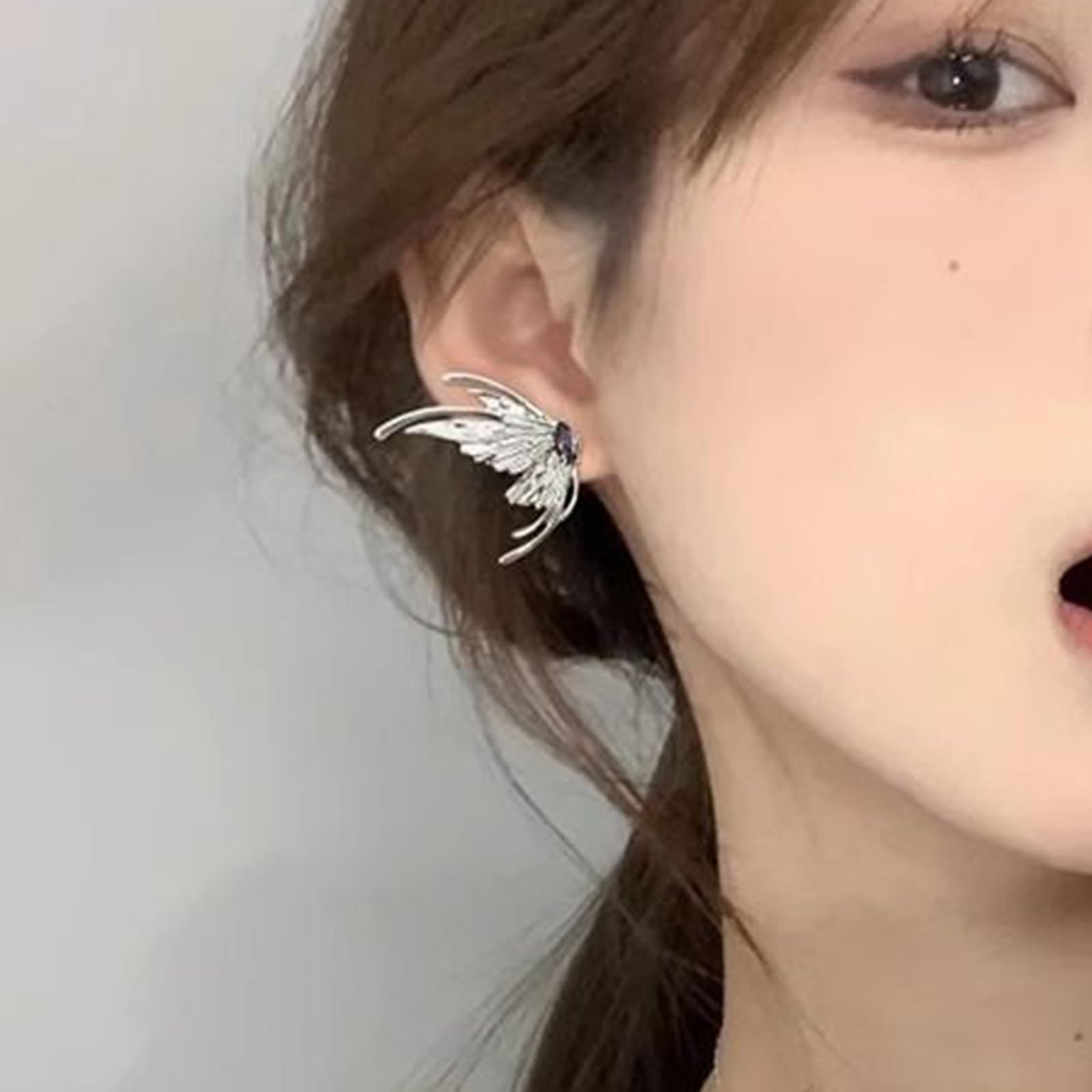 как выглядит Boho Crystal Butterfly Stud Earrings Silver Butterfly Wings Earrings Cute Butter фото