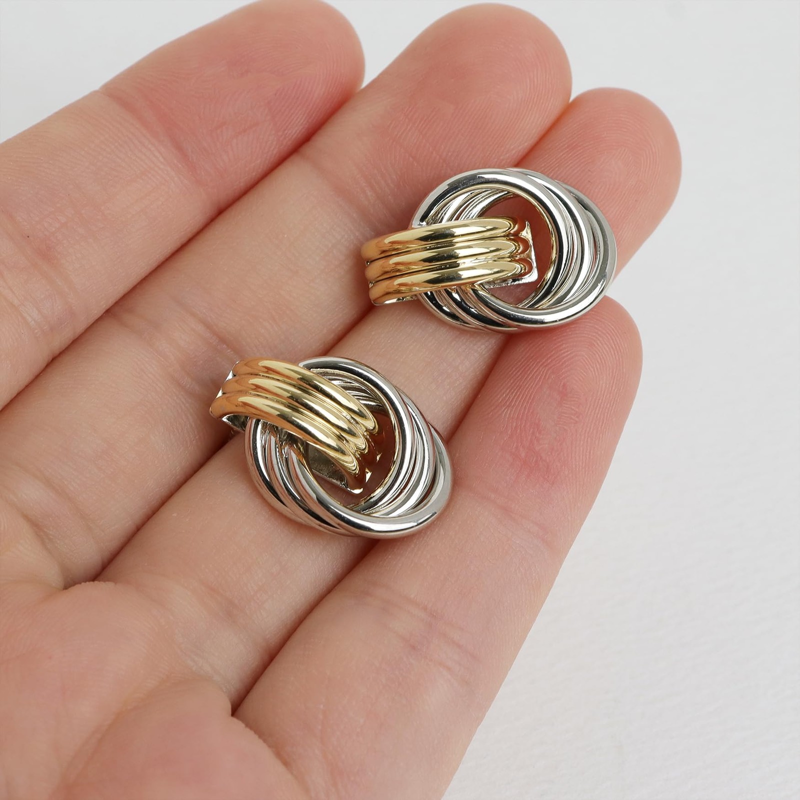 Gold Silver Chunky 2 Tone Knot Stud Earrings for Women Statement Trendy Lightwei