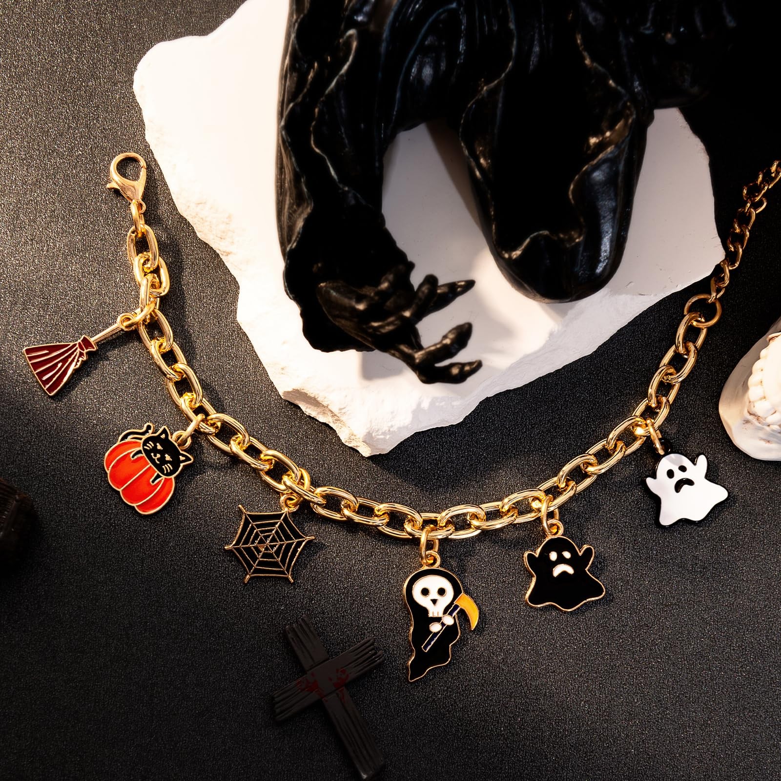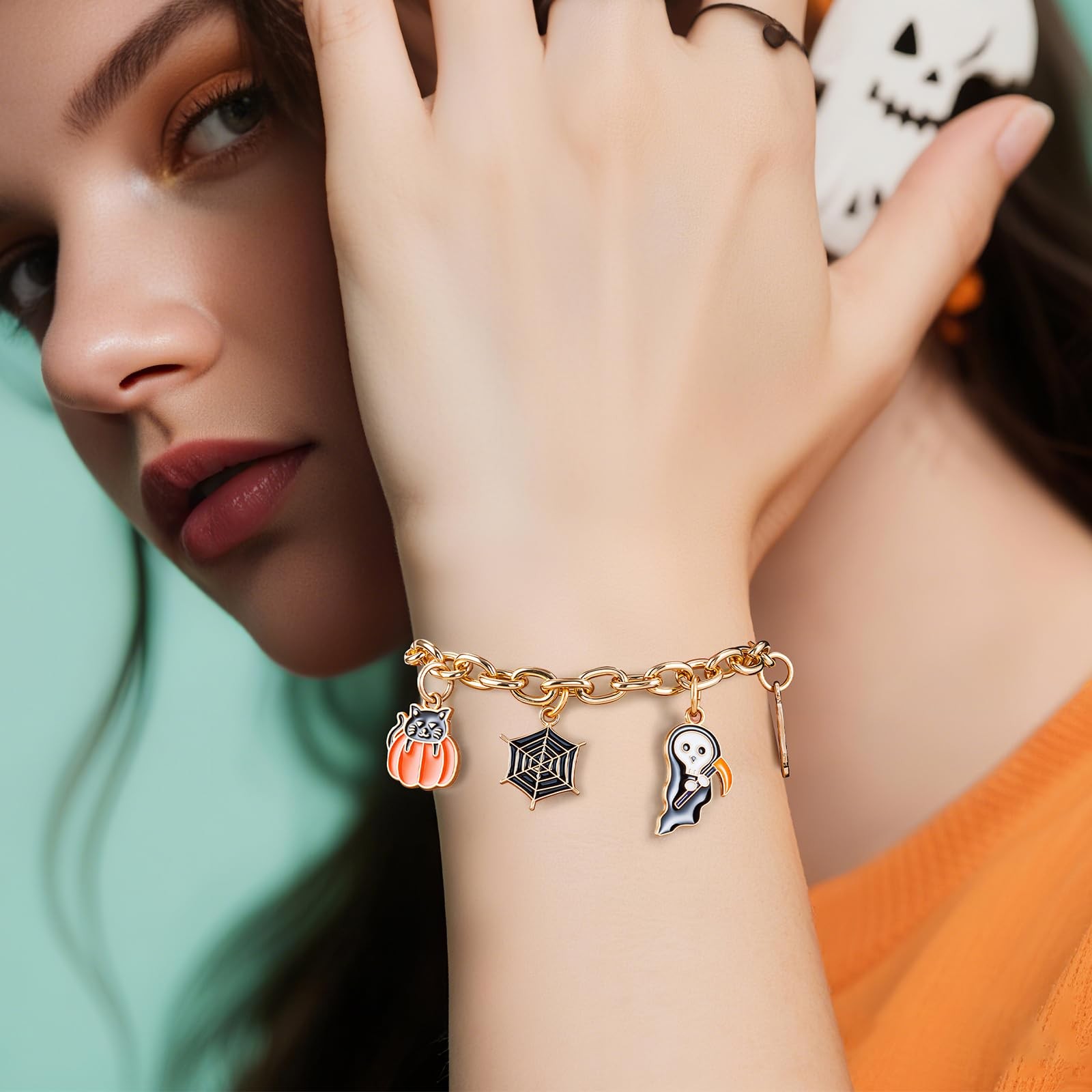Halloween Bracelet for Women, Cute Gothic Charm Jewelry with Pumpkin Ghost Bat S