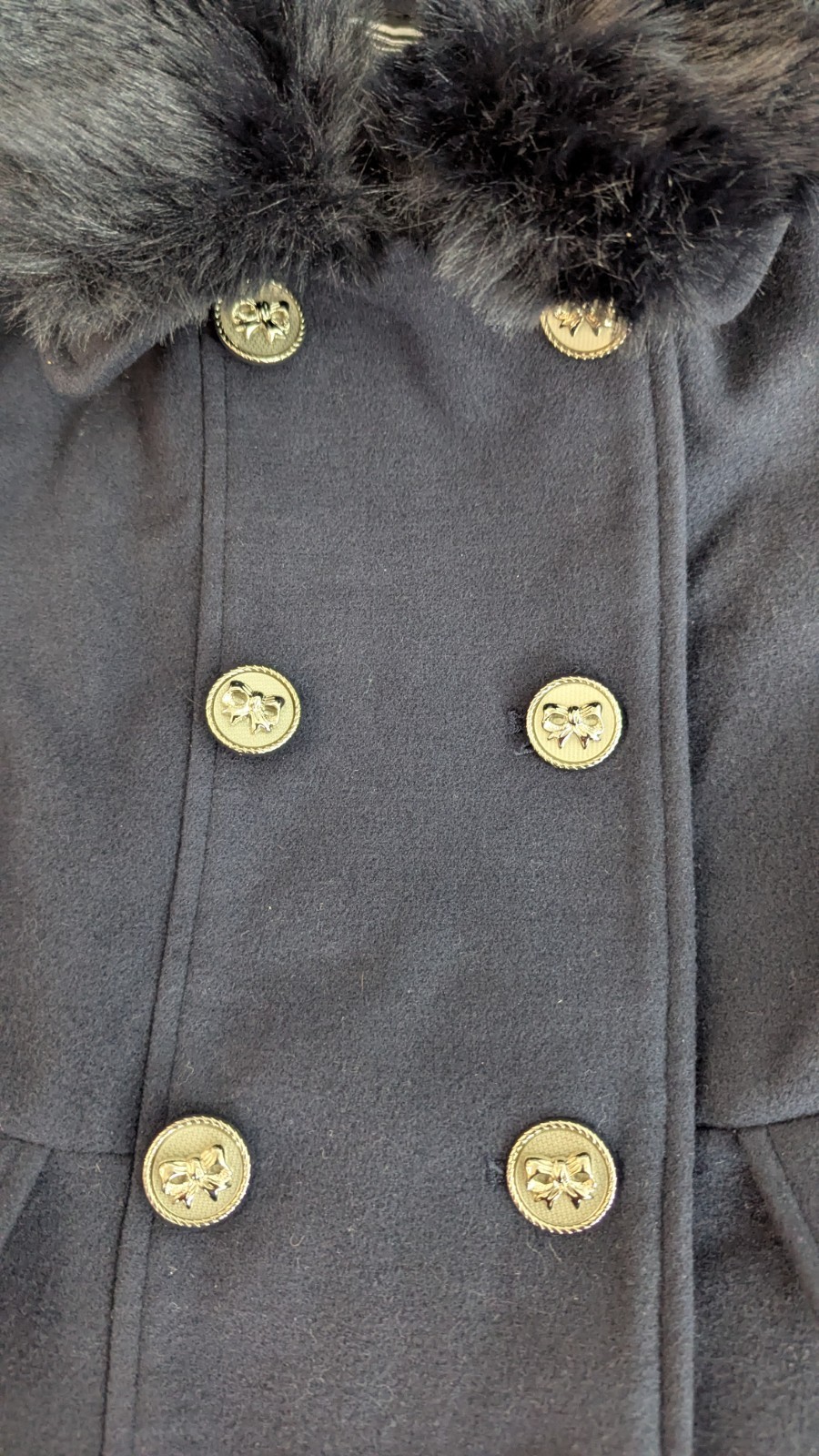 Rothschild Navy Blue Faux Fur Collar Dress Coat Girls S 7/8