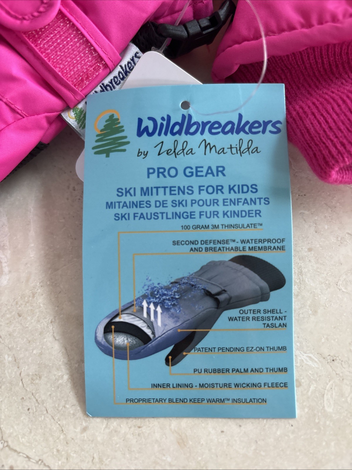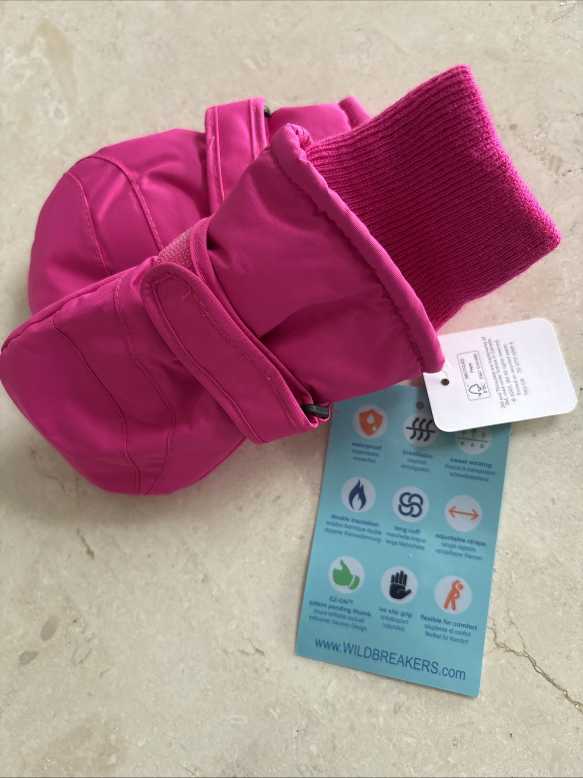 NWT Girls Wildbreakers Ski Mittens Pro Gear Sz 1-2 Yrs Pink 3M Thinsulate