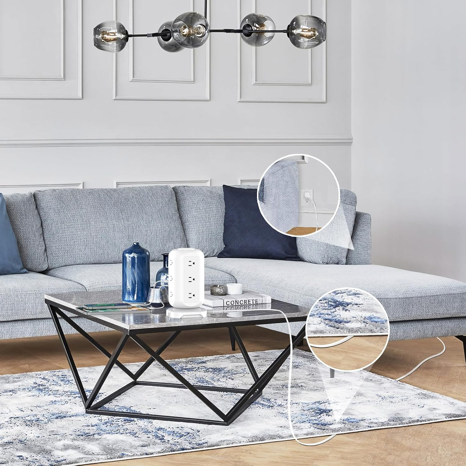как выглядит Tower Power Strip Flat Plug with 12 Outlets 4 USB 1 USB C , Surge Protector Char фото