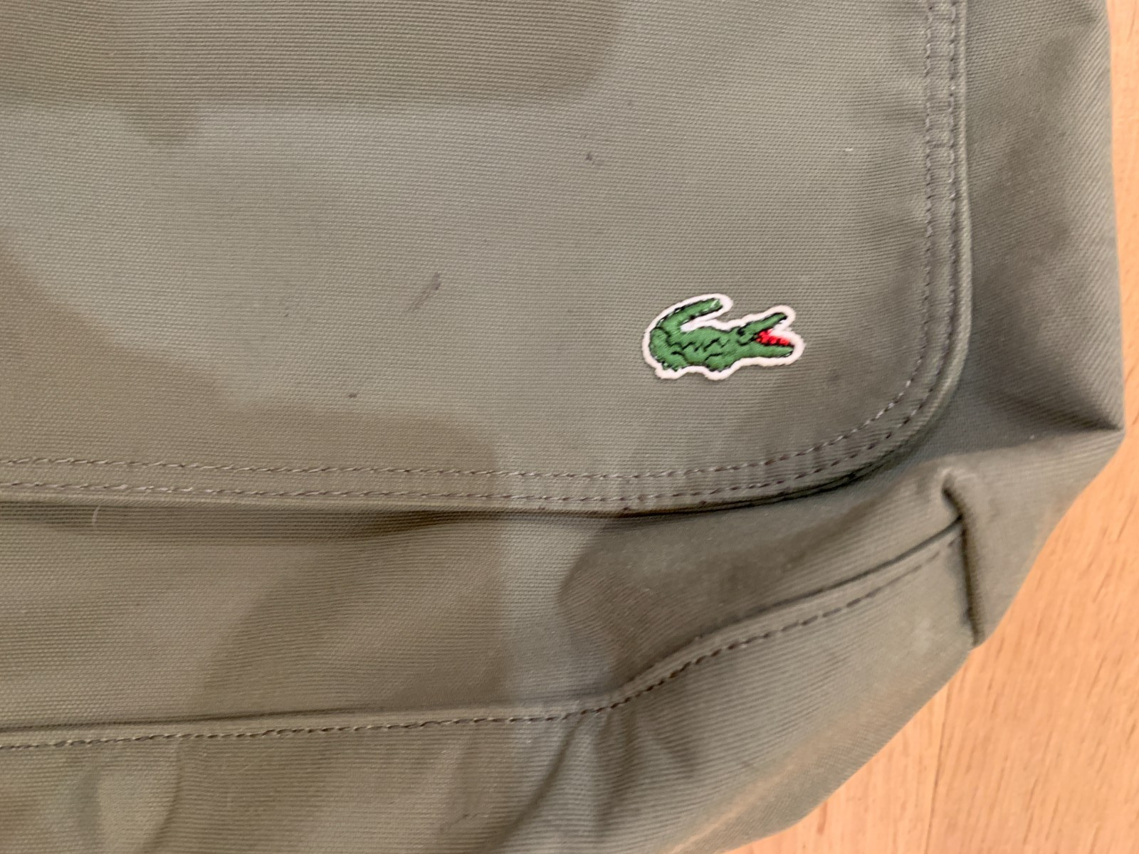 как выглядит Lacoste Messenger Bag Laptop Canvas Cotton Army Green Carry All Large Alligator фото