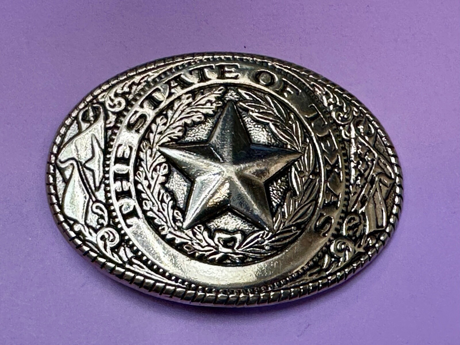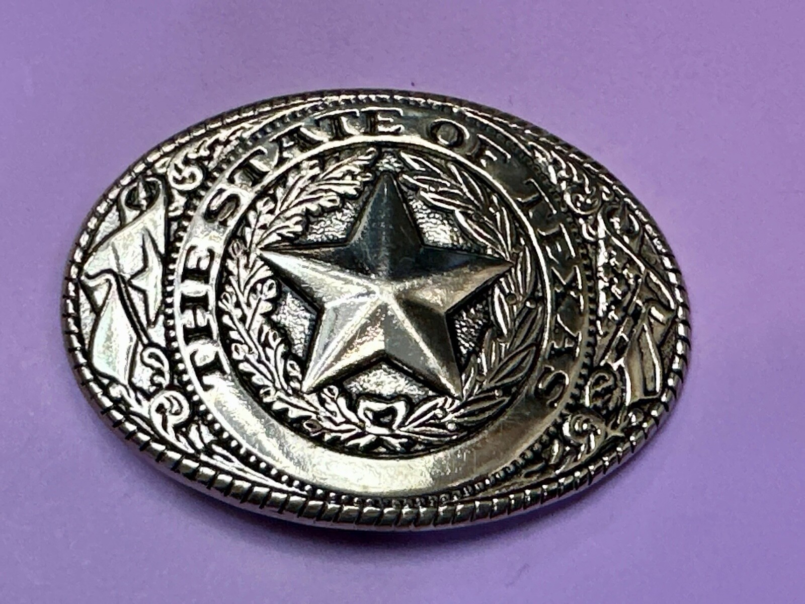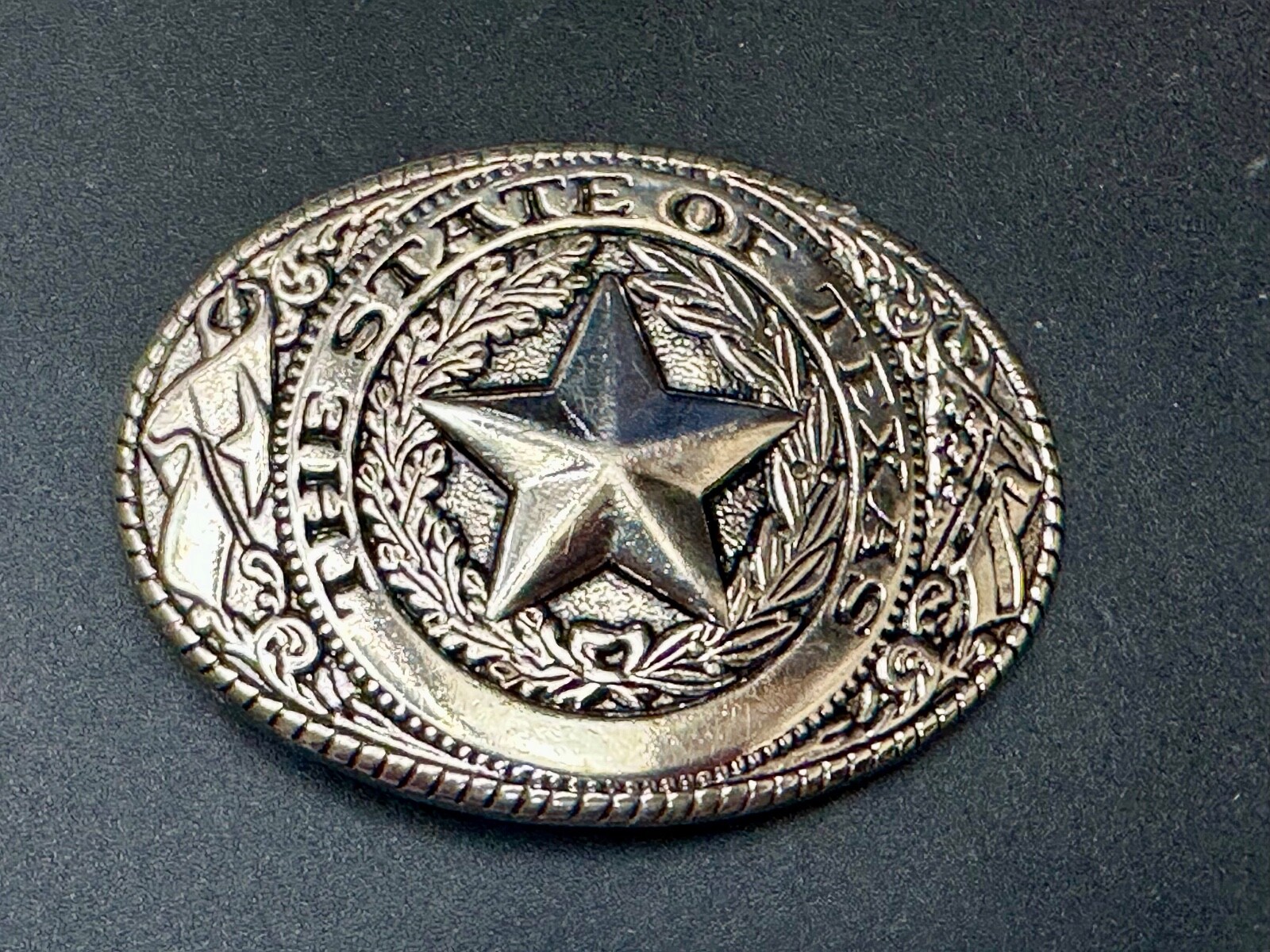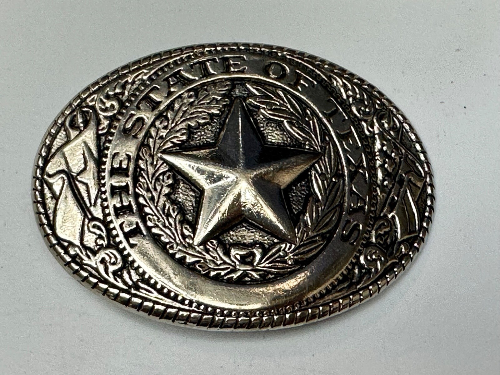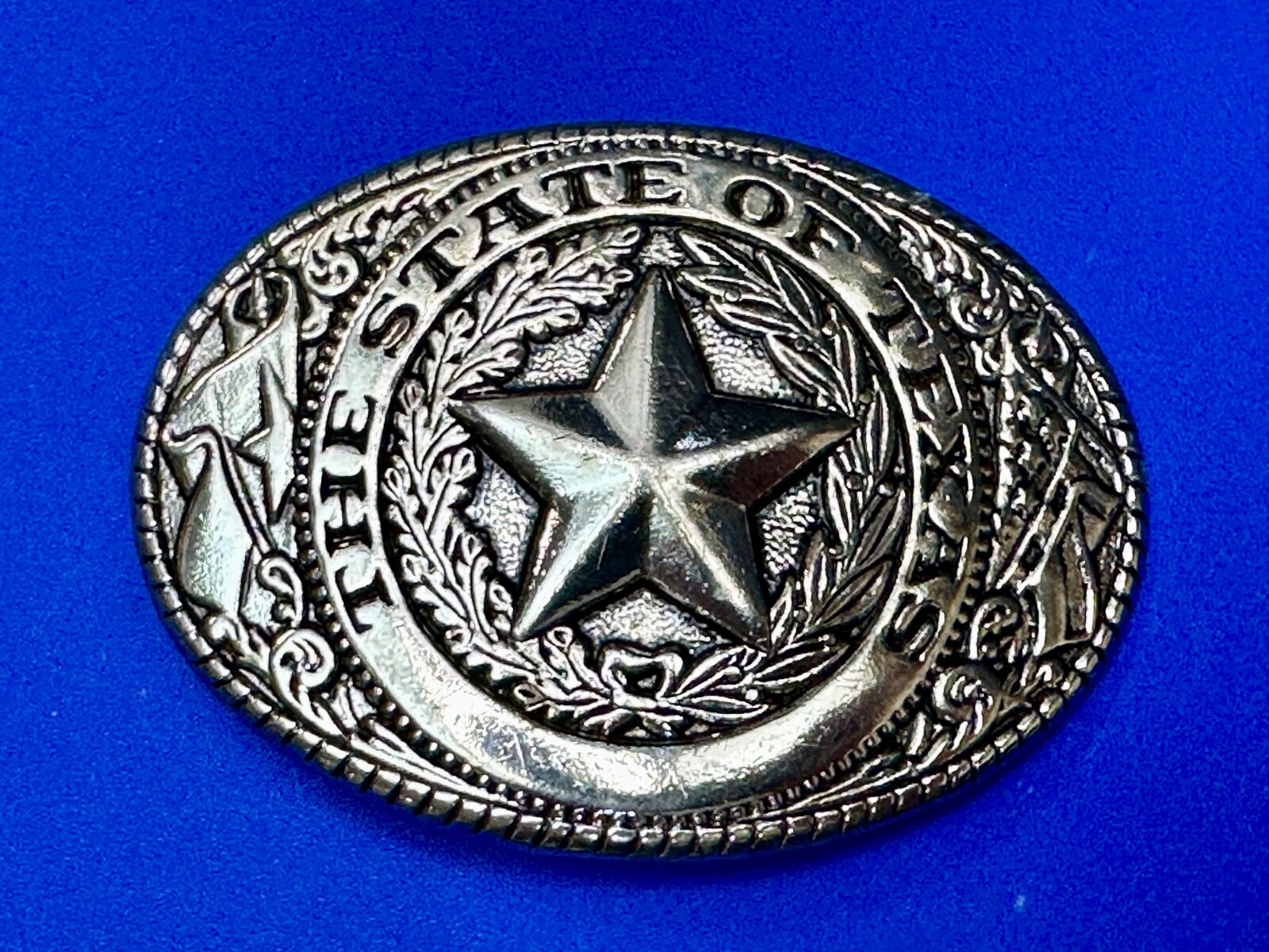 The Great State of TEXAS Star Flag Olive Branch Gold Tone Oval Belt Buckle