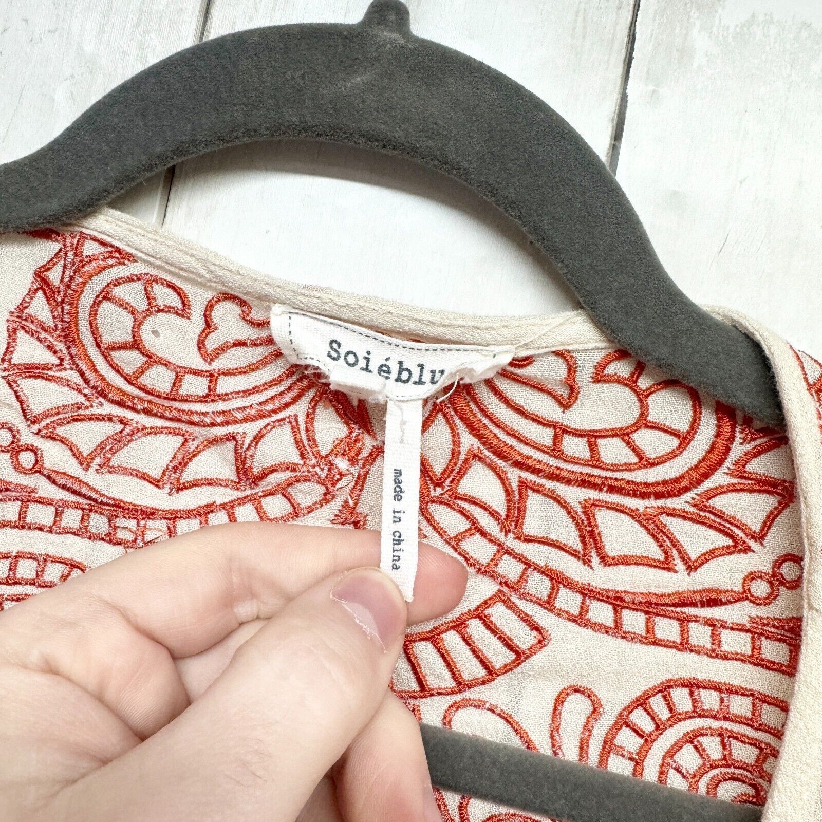 как выглядит Soieblue Kimono Small Cream Orange Embroidered Bohemian Duster Open Cardigan фото