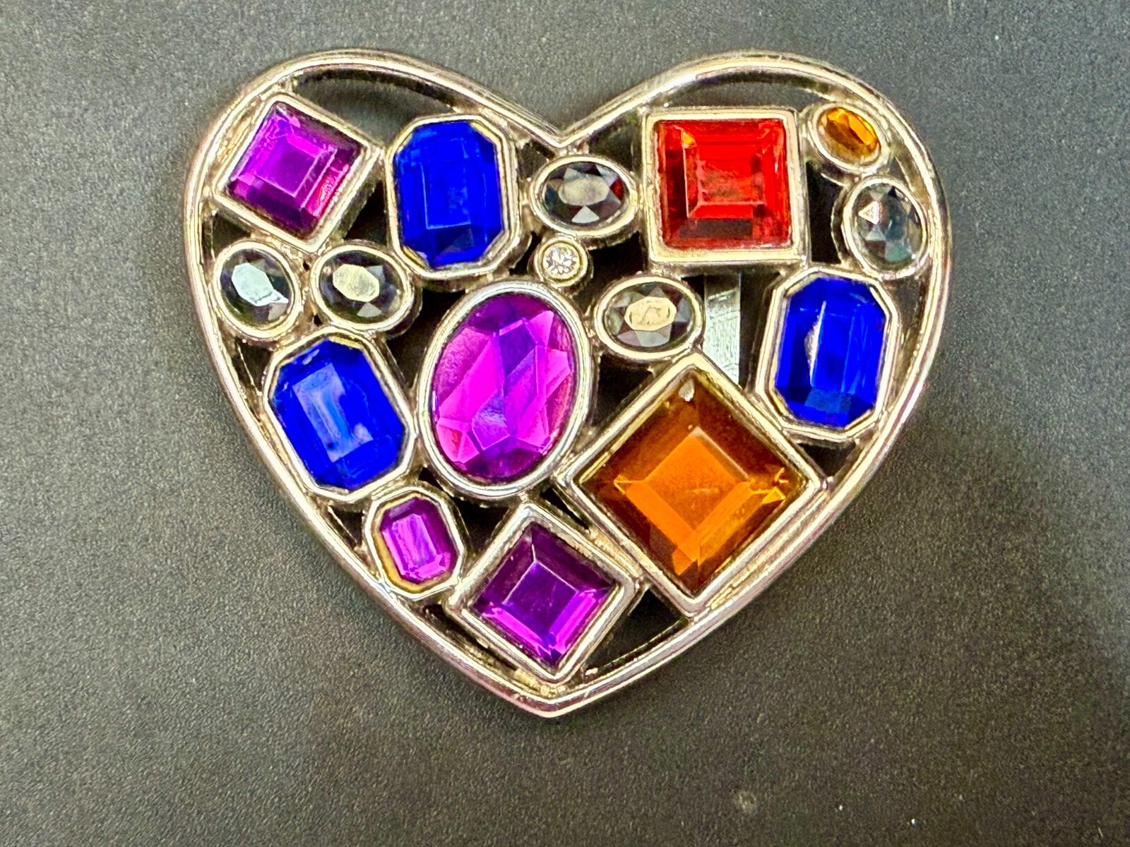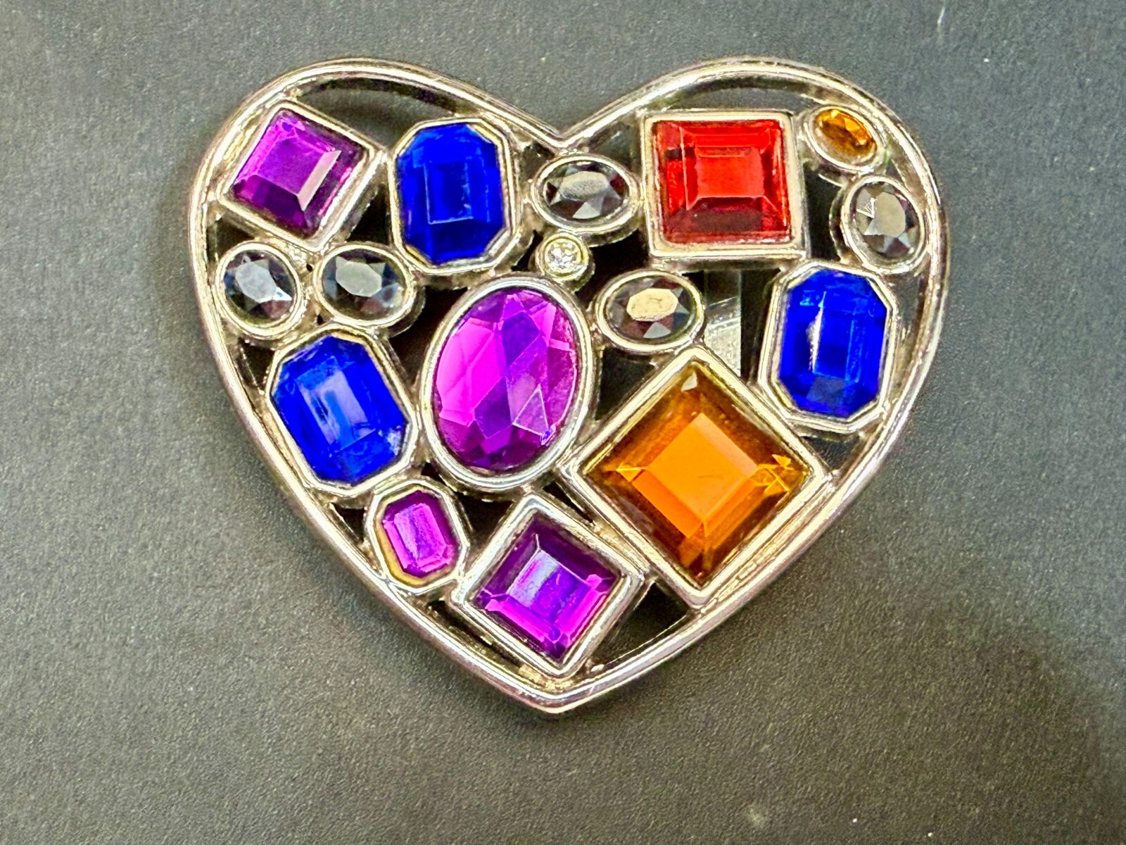 как выглядит Chunky Mixed Color Rhinestone Heart Shaped See-Trough Silver Tone Belt Buckle фото