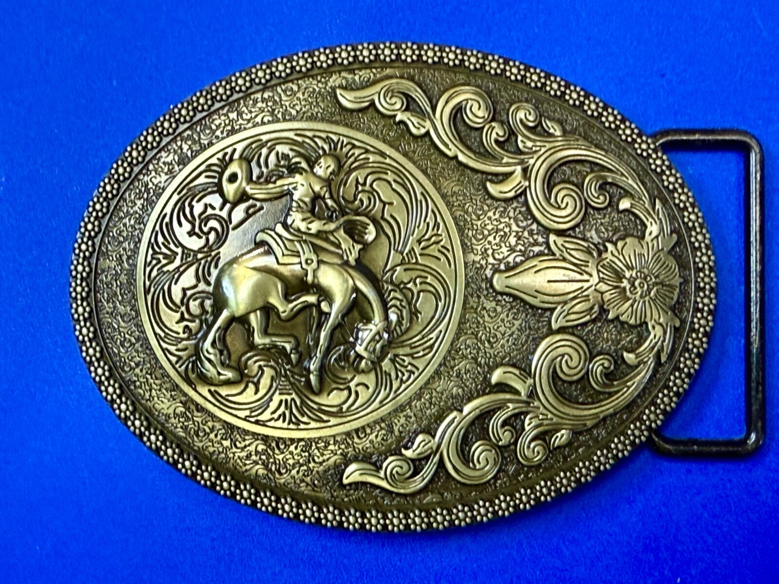 Western Rodeo Cowboys Saddle Bronc Horse Riding Brown Color Ornate Belt Buckle