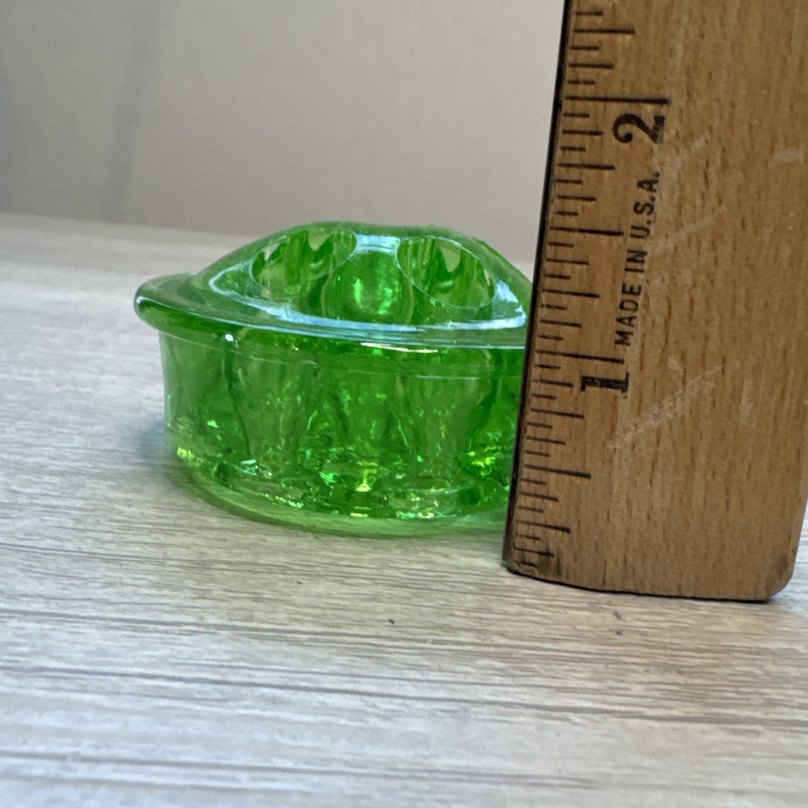 • Vintage Uranium Vaseline Glass Flower Frog 7 Hole Round UV Tested Small Chip