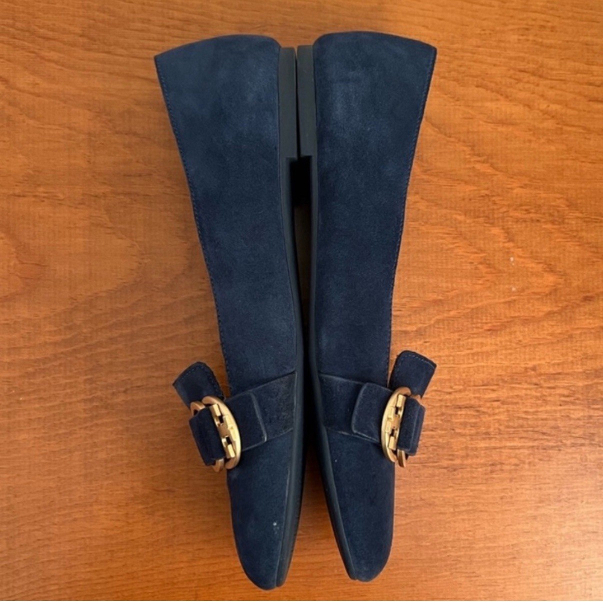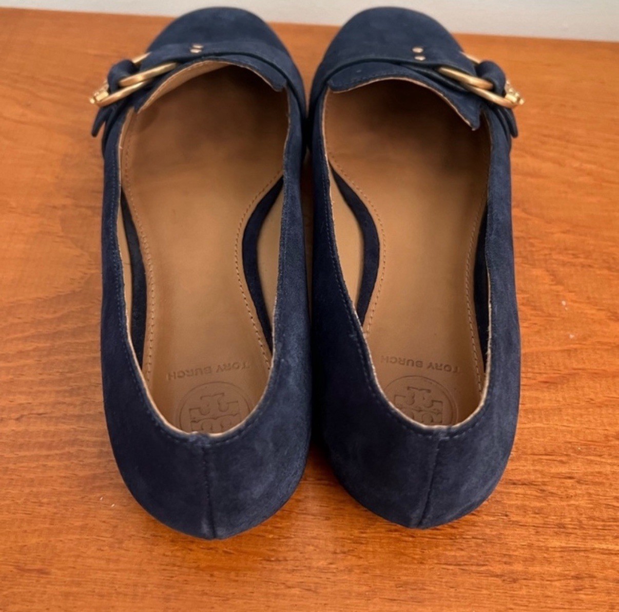 как выглядит Tory Burch Marsden Smoking Loafer Blue Suede Gold Hardware size 8 фото