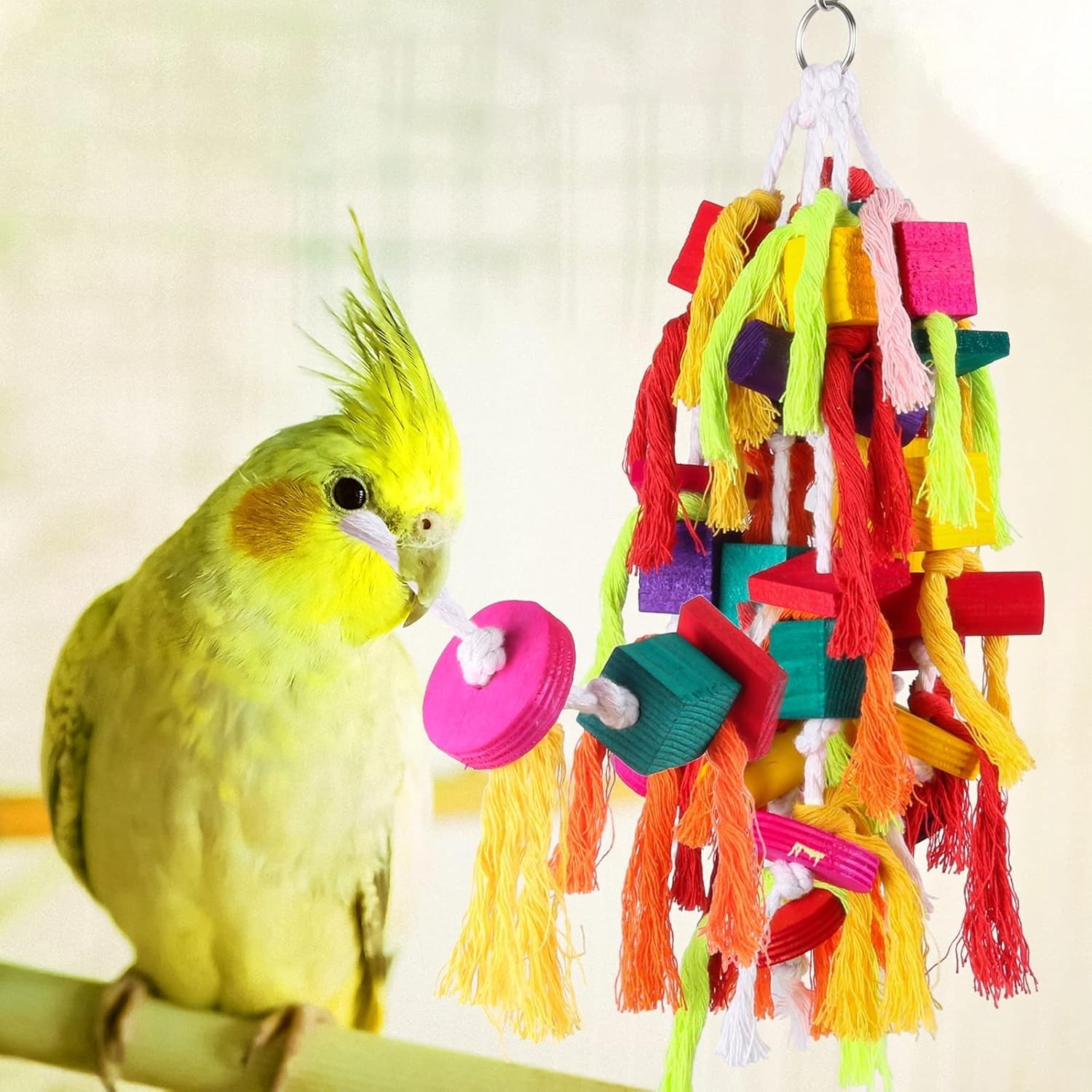 Large and Small Parrot Chewing Toys Parrot Cage Bite Toy Wooden Block Tearing...
