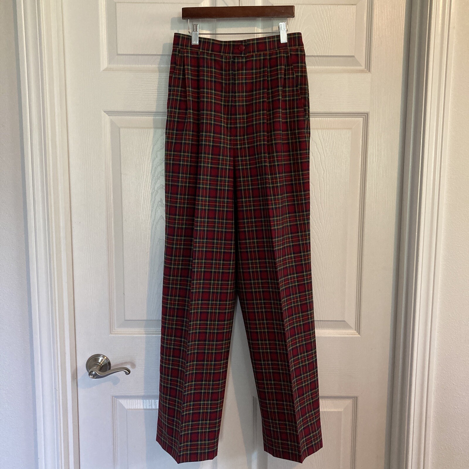 Pendleton Pants Women Vintage 10 27x31 Red Wool Royal Stewart Tartan Plaid USA