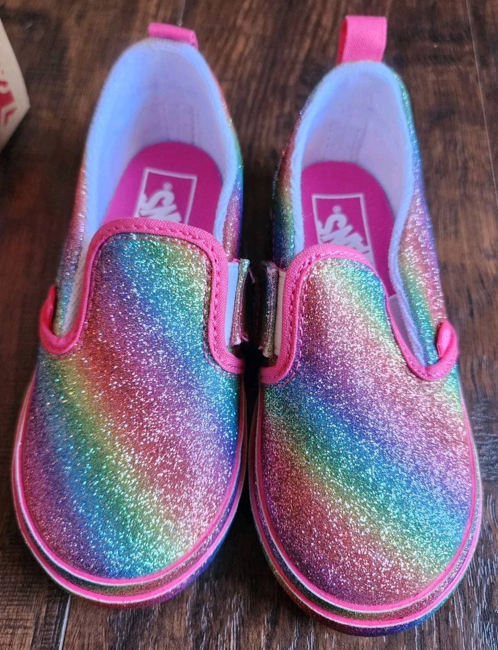 Vans Glitter Rainglow Rainbow Girls Kids Size 9 Toddler Classic Slip On Shoes