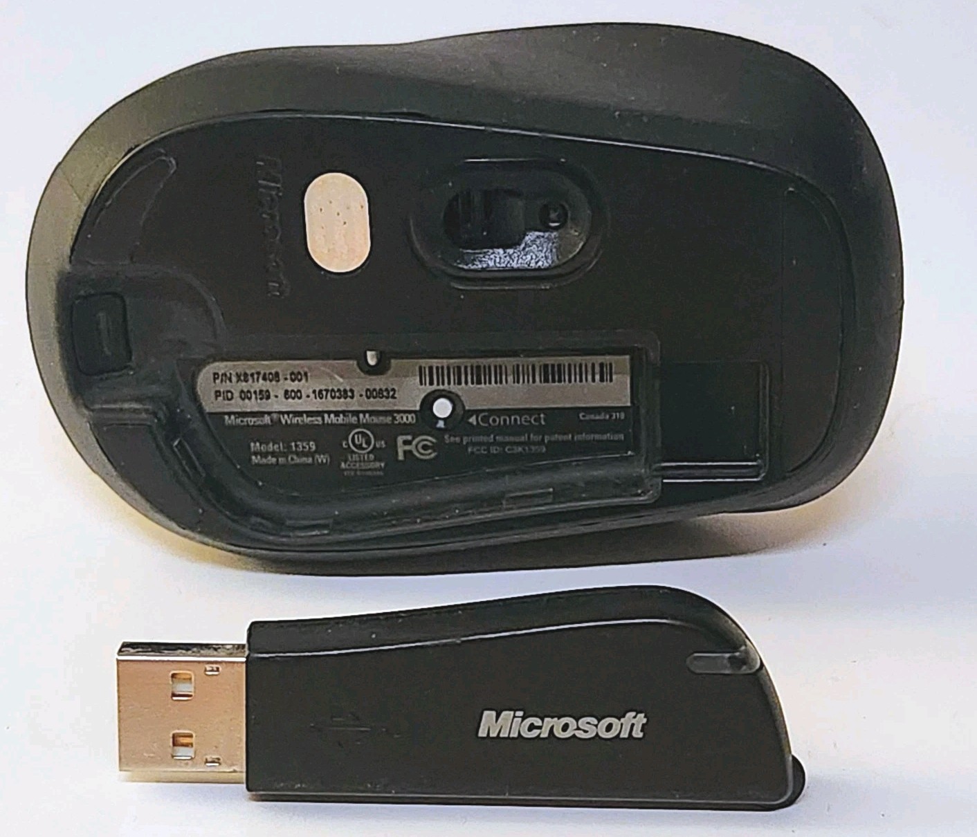 Microsoft Wireless Mouse 3000 / Model 1359 Optical 4-Button USB Receiver