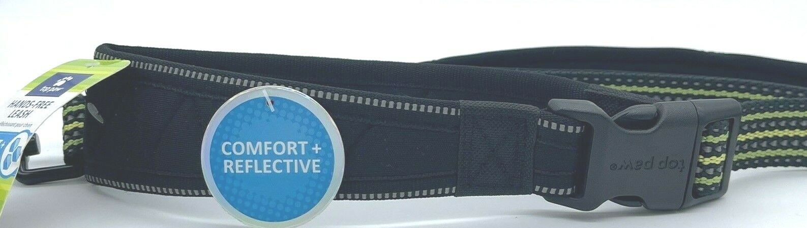 NEW Top Paw Hands Free Reflective Dog Leash Waist Belt GREEN YELLOW GRAY 4 - 6ft