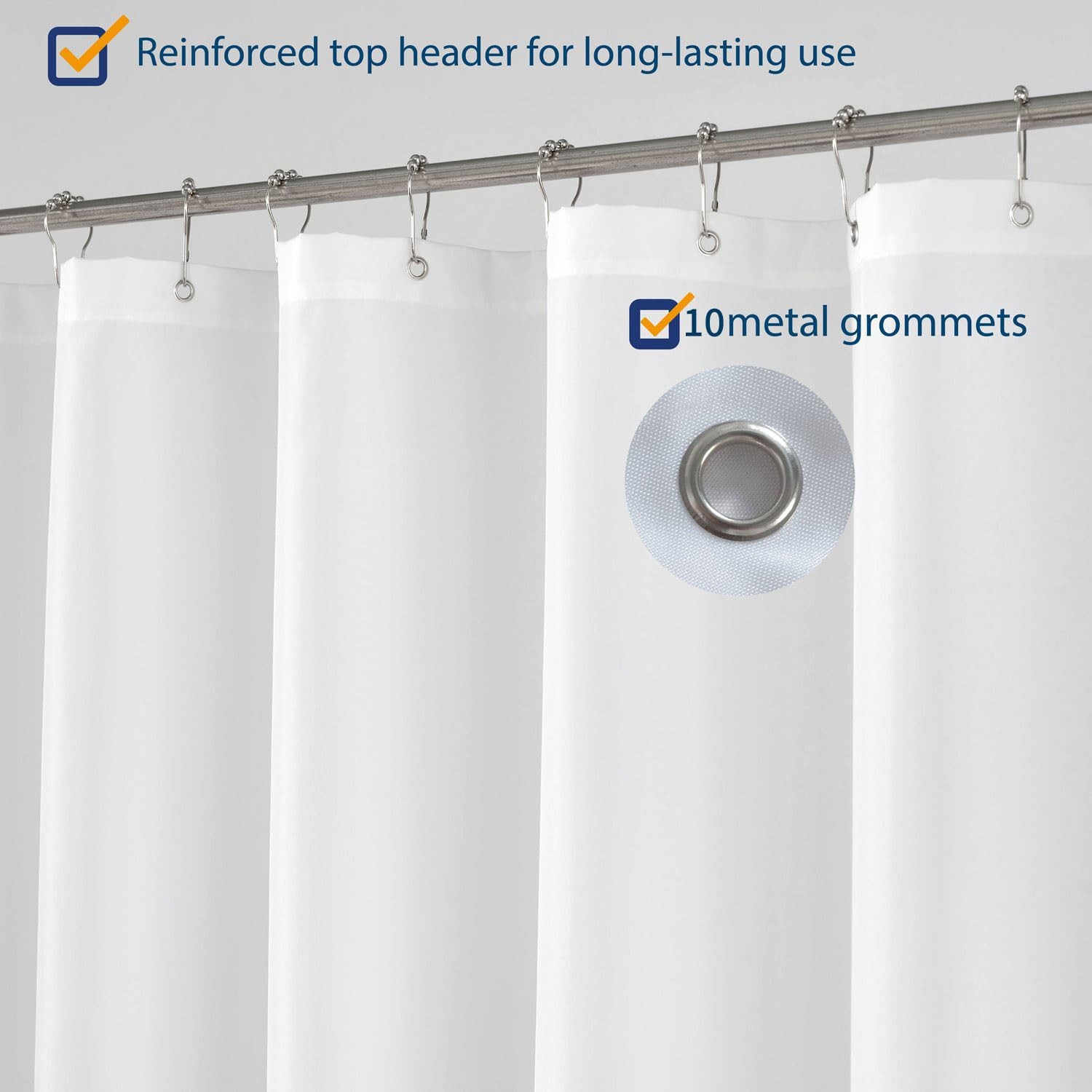 RV Shower Curtain Liner 60x64 White Fabric for Travel Trailers, Grommets