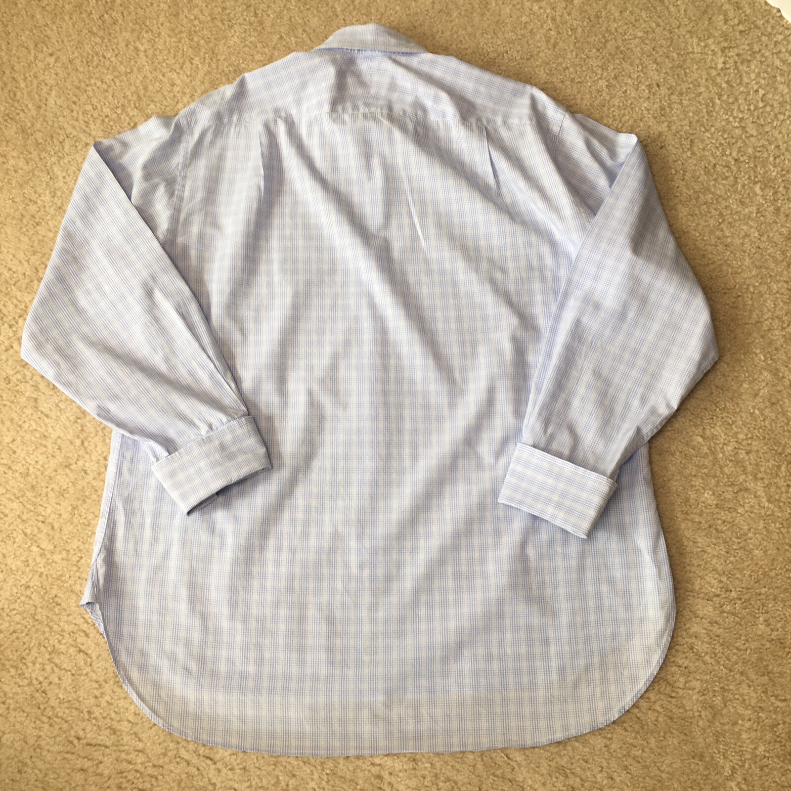 как выглядит Charles Tyrwhitt Dress Shirt Mens 17/35 Blue Micro Check French Cuffs фото