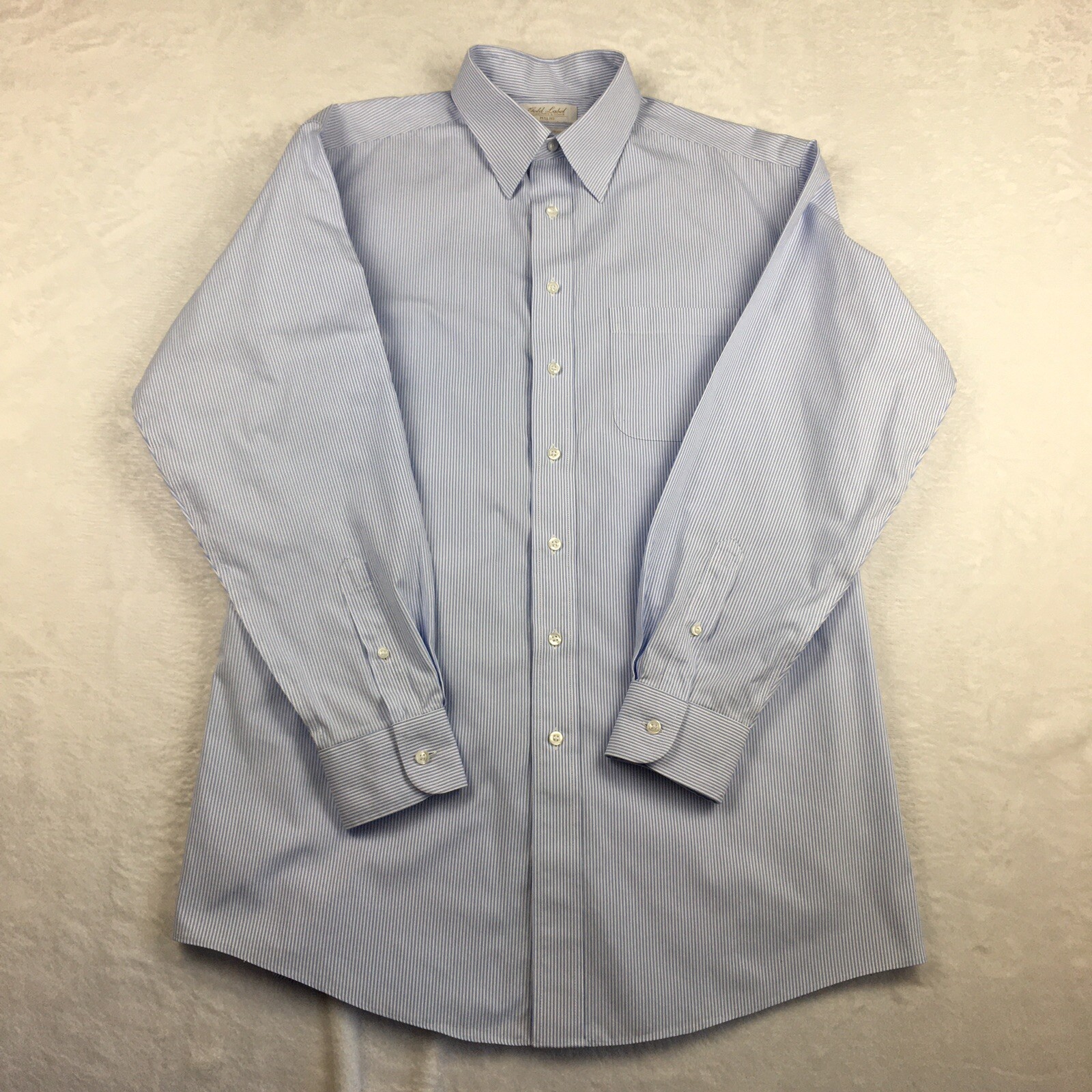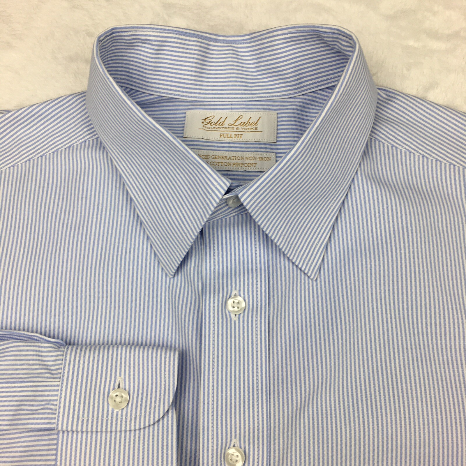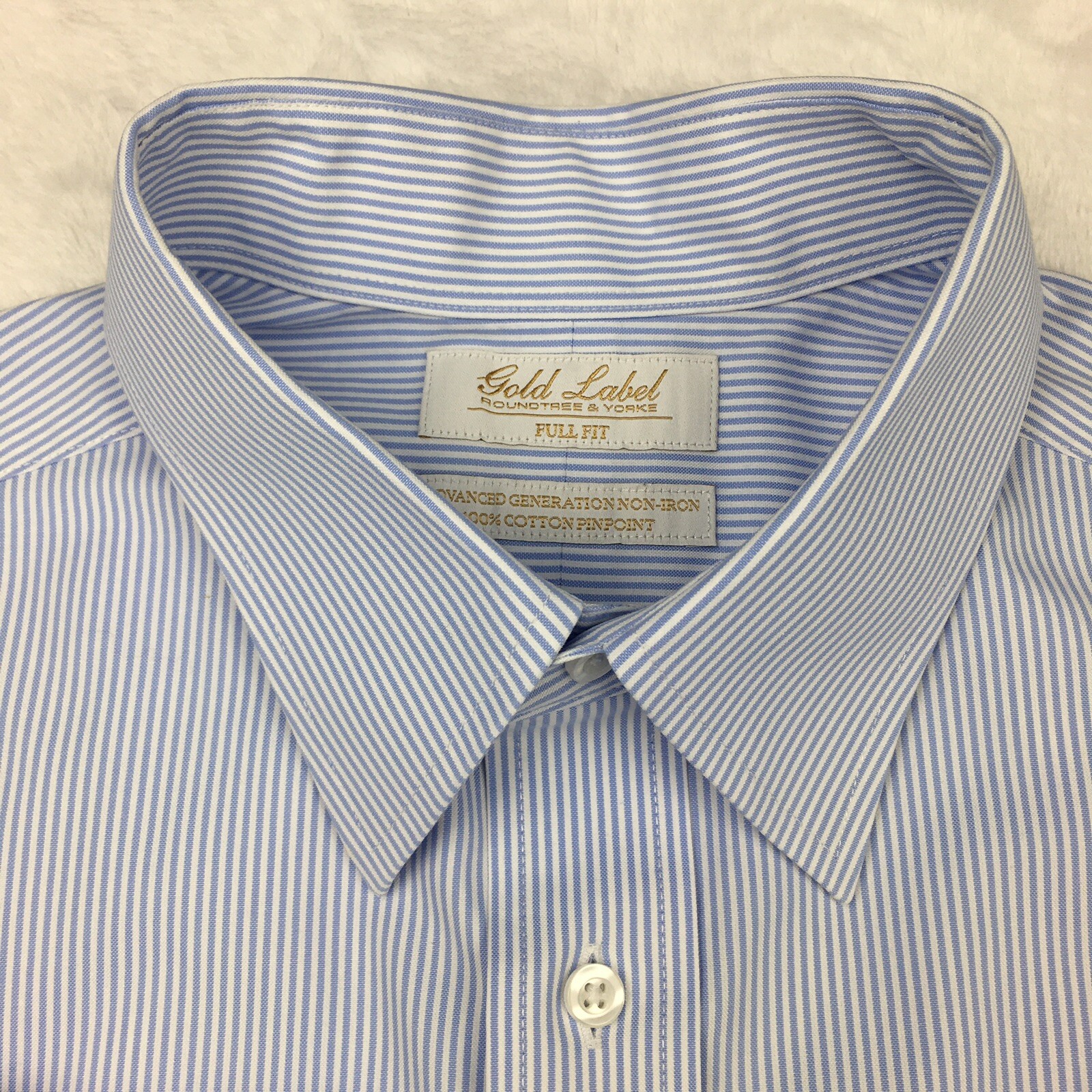 Roundtree Yorke Gold Label Dress Shirt Mens 15.5-34 Blue/White Stripe Full Fit