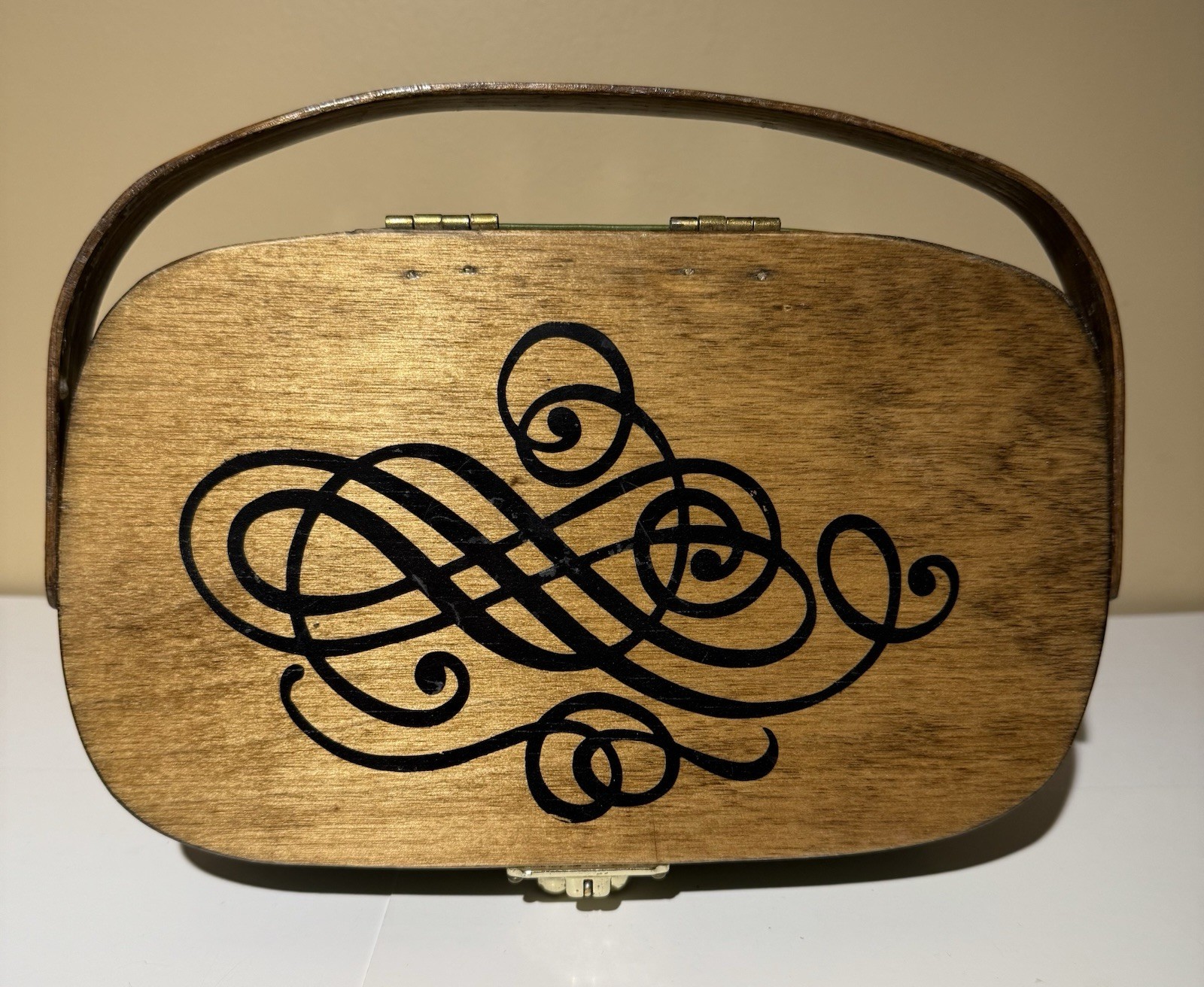 как выглядит Vintage, Hand-painted Caro-Nan Woven Wooden Basket Purse - Apples фото