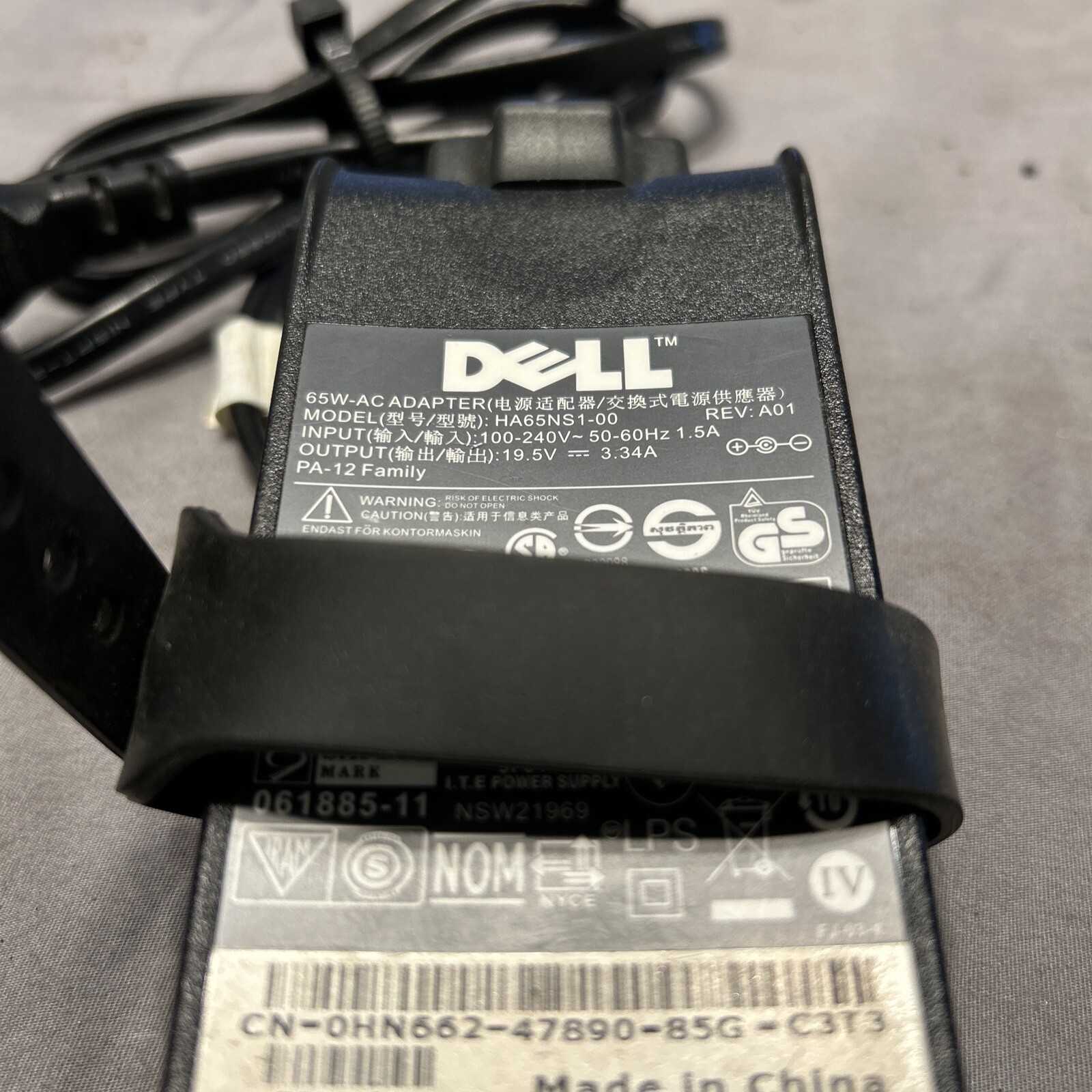 DELL AC ADAPTER HA65NS1-00 65W 100-240V IMPUT 19.5V OUTPUT