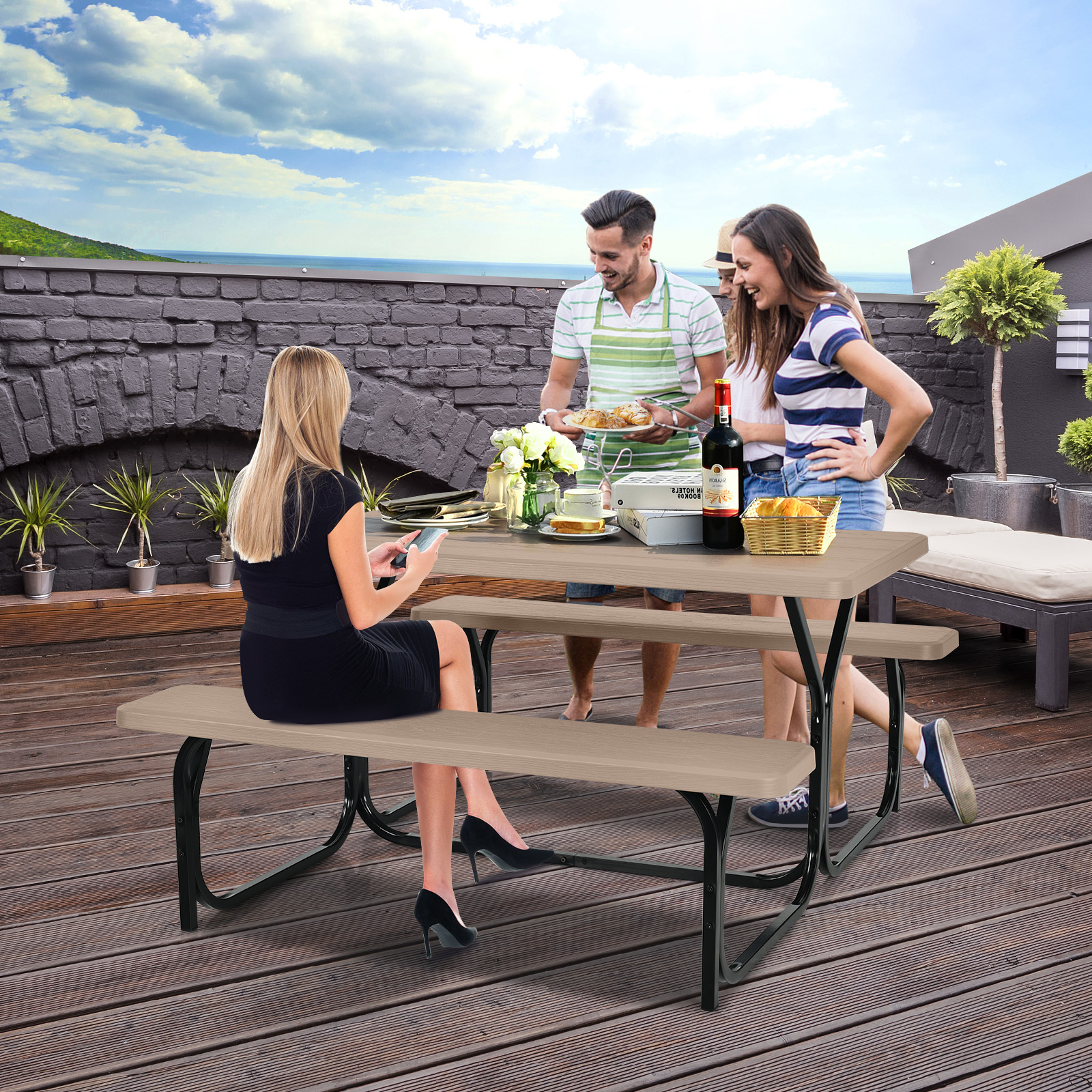 Picnic Table Bench Set Outdoor Backyard Garden Party Dining All Weather
