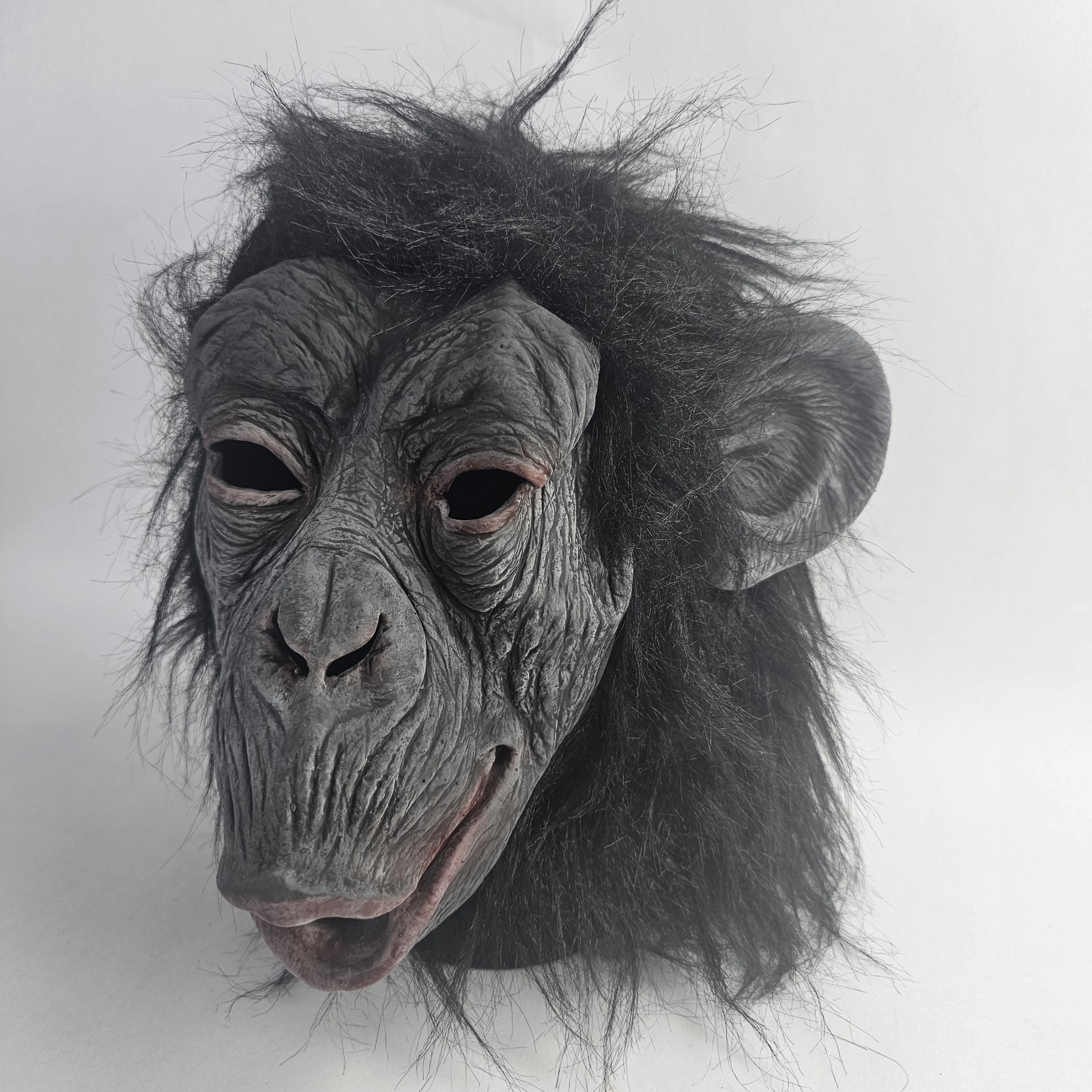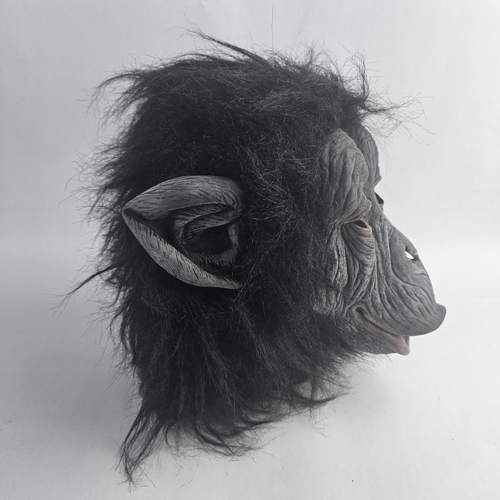 как выглядит Monkey Mask Gorilla Ape Face Costume Dress up Halloween Black Hair Rubber Face фото