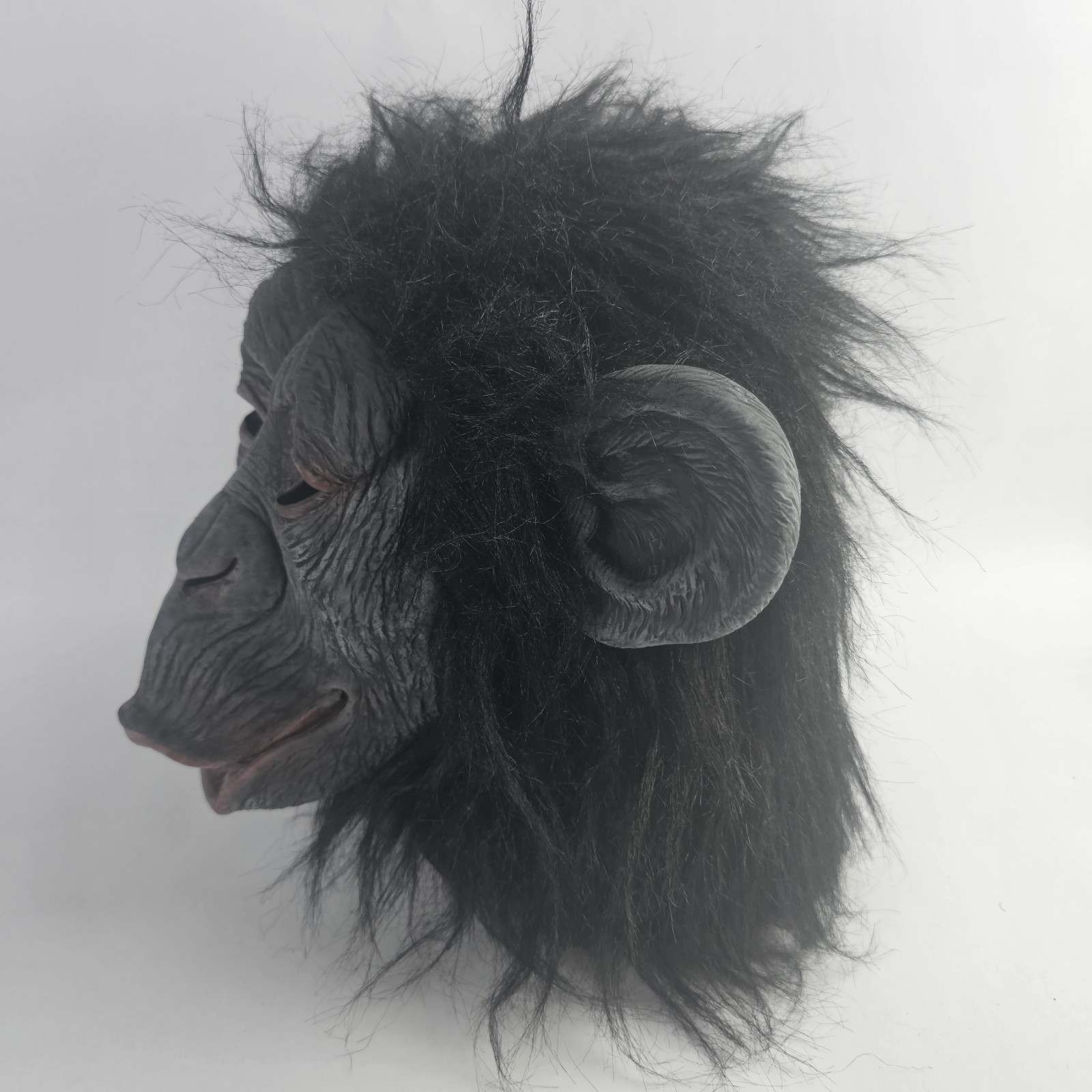 Monkey Mask Gorilla Ape Face Costume Dress up Halloween Black Hair Rubber Face