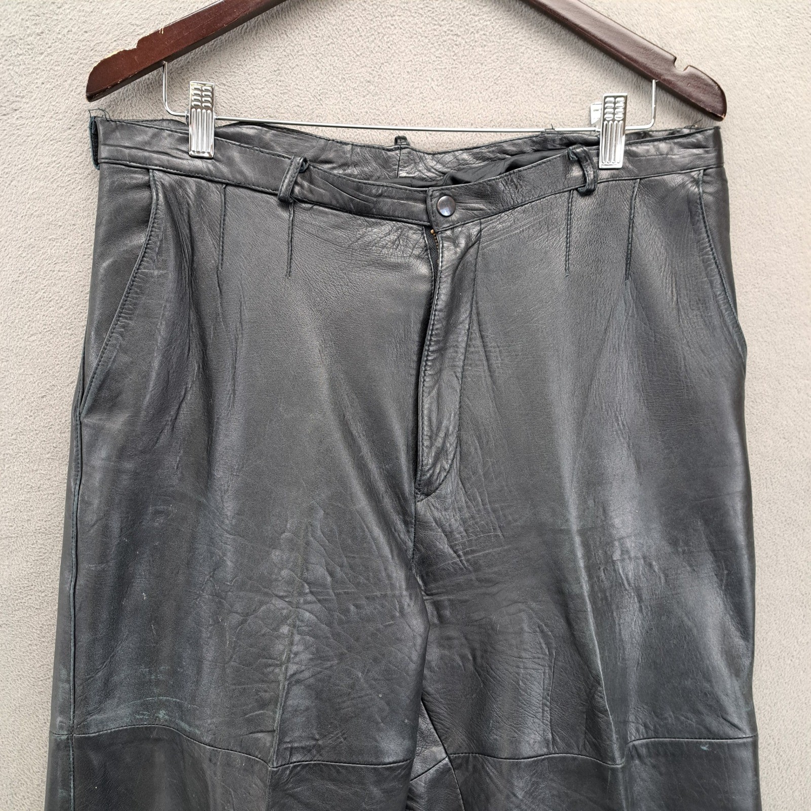 как выглядит SAXONY Mens Black Leather Pants Trousers Waist 34 Inseam 31 Lined 34x31 фото