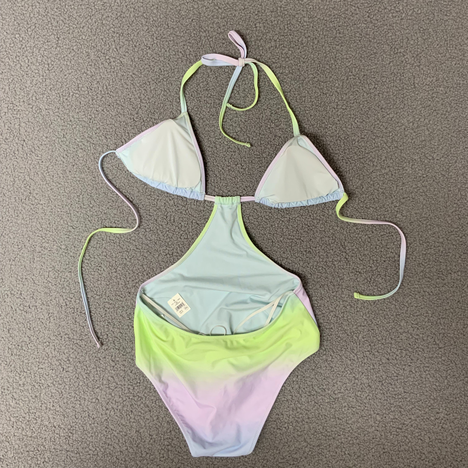 как выглядит NWT Aerie One Piece Bathing Suit Size small multi color cut out New фото