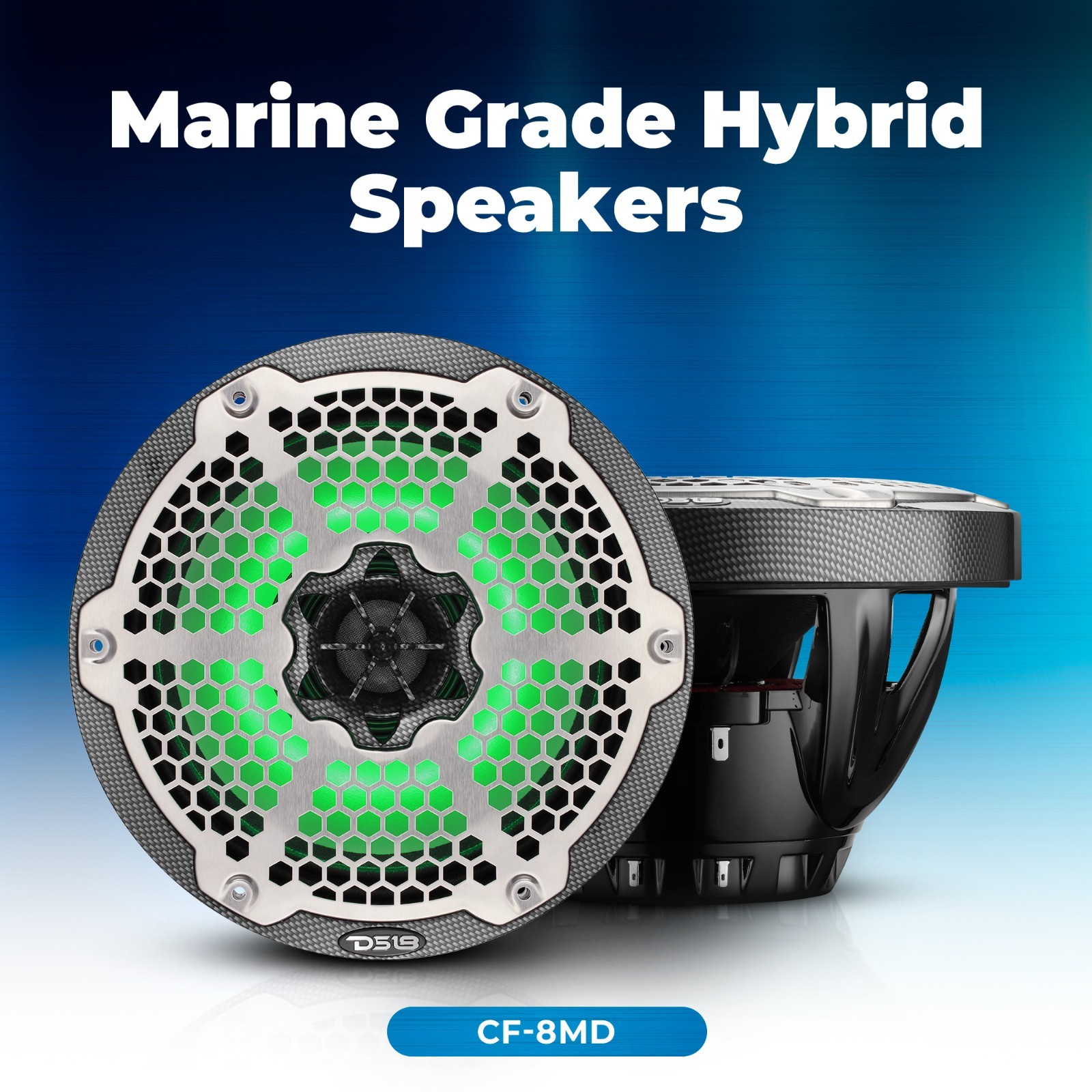 DS18 CF-8MD 8 Marine 2-Way Hybrid Speaker w/ RGB LED Compression Driver PAIR