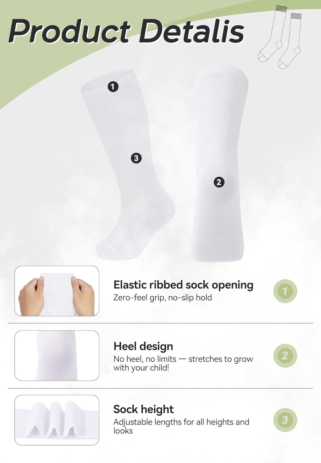 Kids Soccer and Baseball Knee High Socks - Girls Cotton Long Seamless Socks for