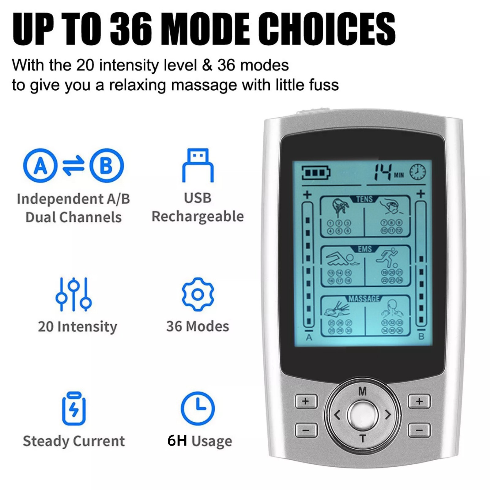 Tens Unit Pulse Massager Rechargeable Muscle Stimulator Full Body Pain Therapy