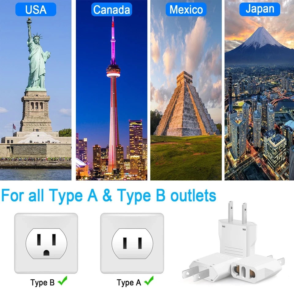 4 Pack European to US Plug Adapter, 220V to 110V Adapter Plug Converter, Trav...