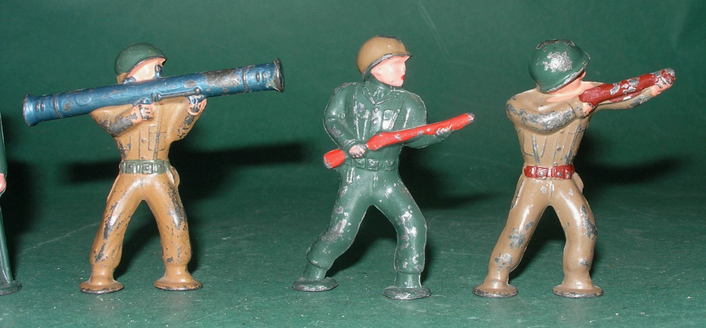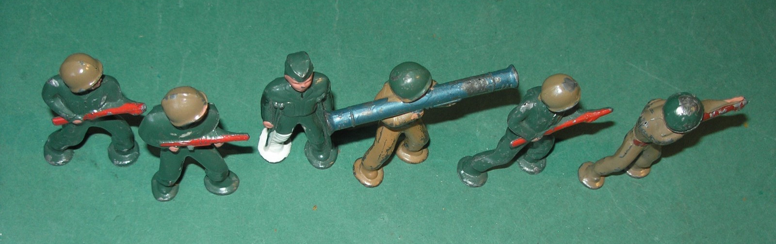 Lot of 6 Barclay Manoil WW1 Toy Soldiers Wounded Infantry Bazooka Green