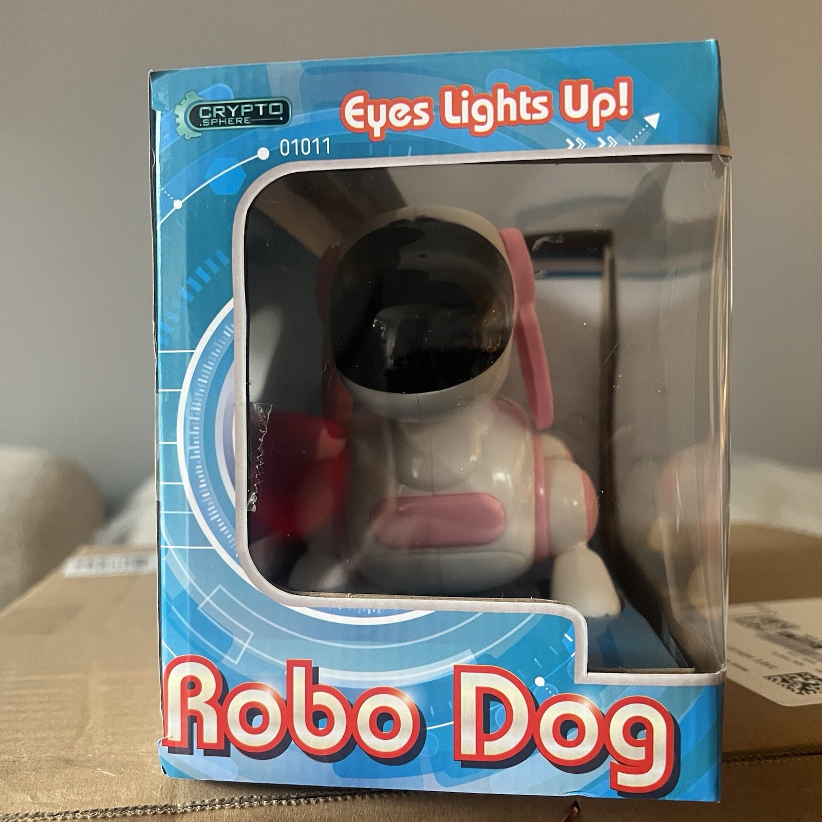 как выглядит Robo Dog Pink White Dog Walks On Own Eyes Light Up Brand New In Box фото