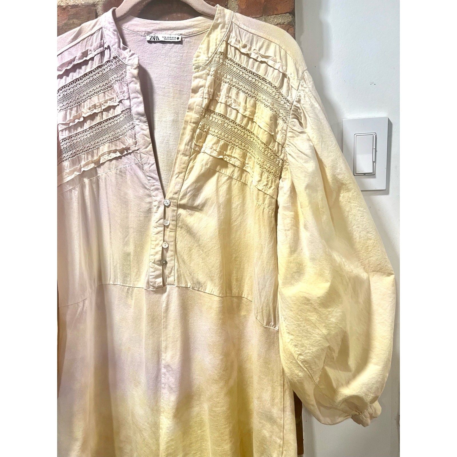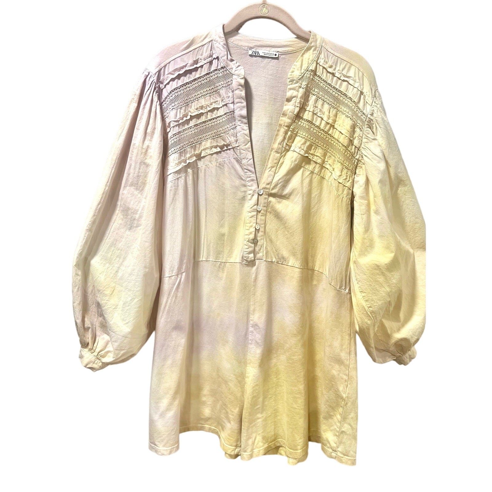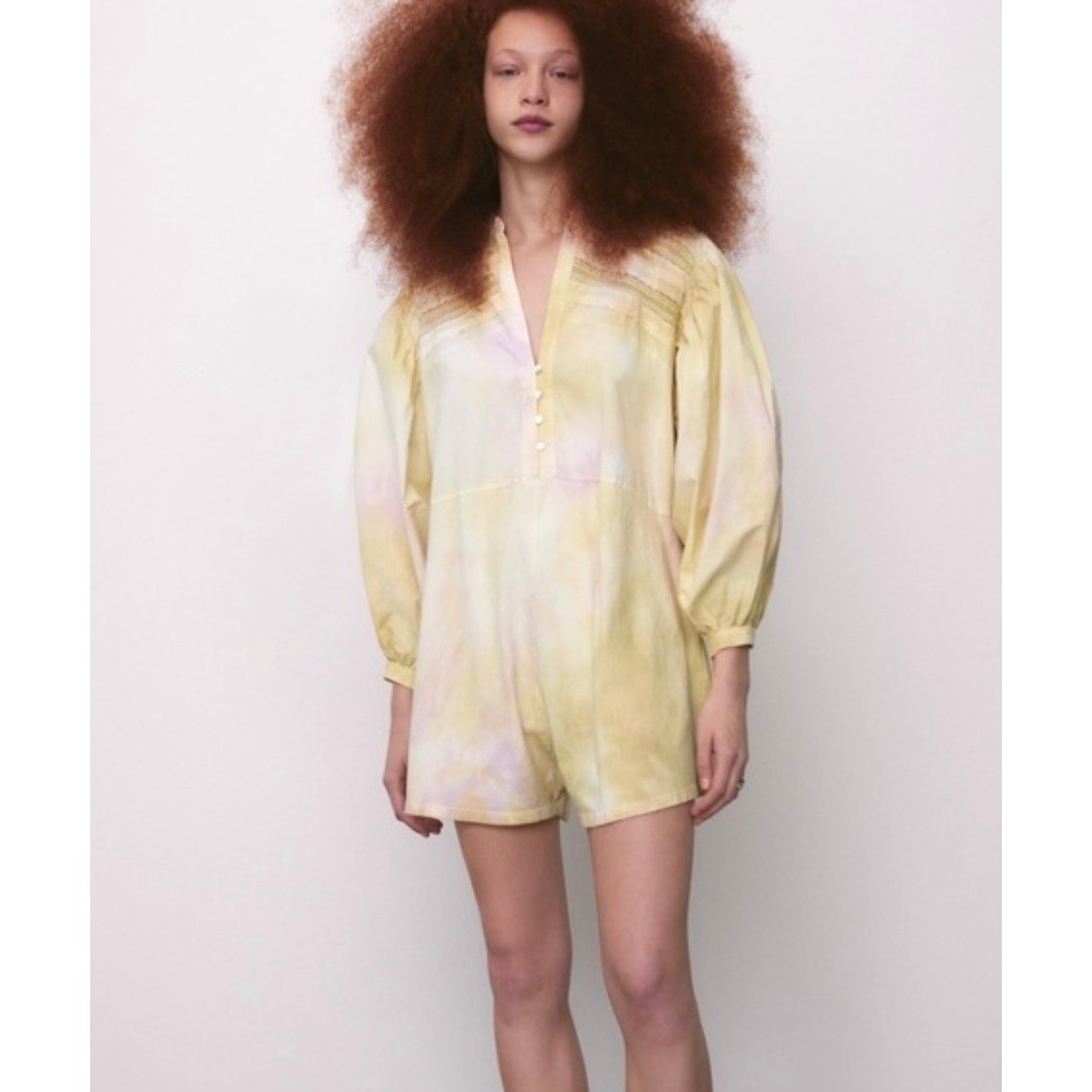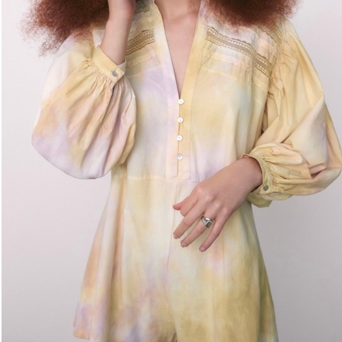 как выглядит ZARA Boho Cozy Cotton Tie Dye Puff Sleeve Playsuit Romper Small фото