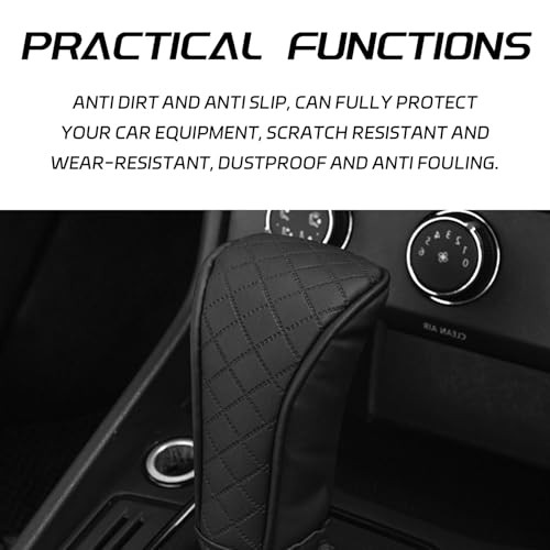Leather Car Gear Shift Knob Cover, Exquisite Embroidery Design, Durable Black