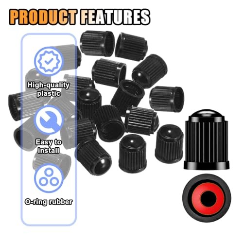 20PCS Tire Valve Stem Caps, Tire Valve Dust Caps Air Caps Cover with O Black