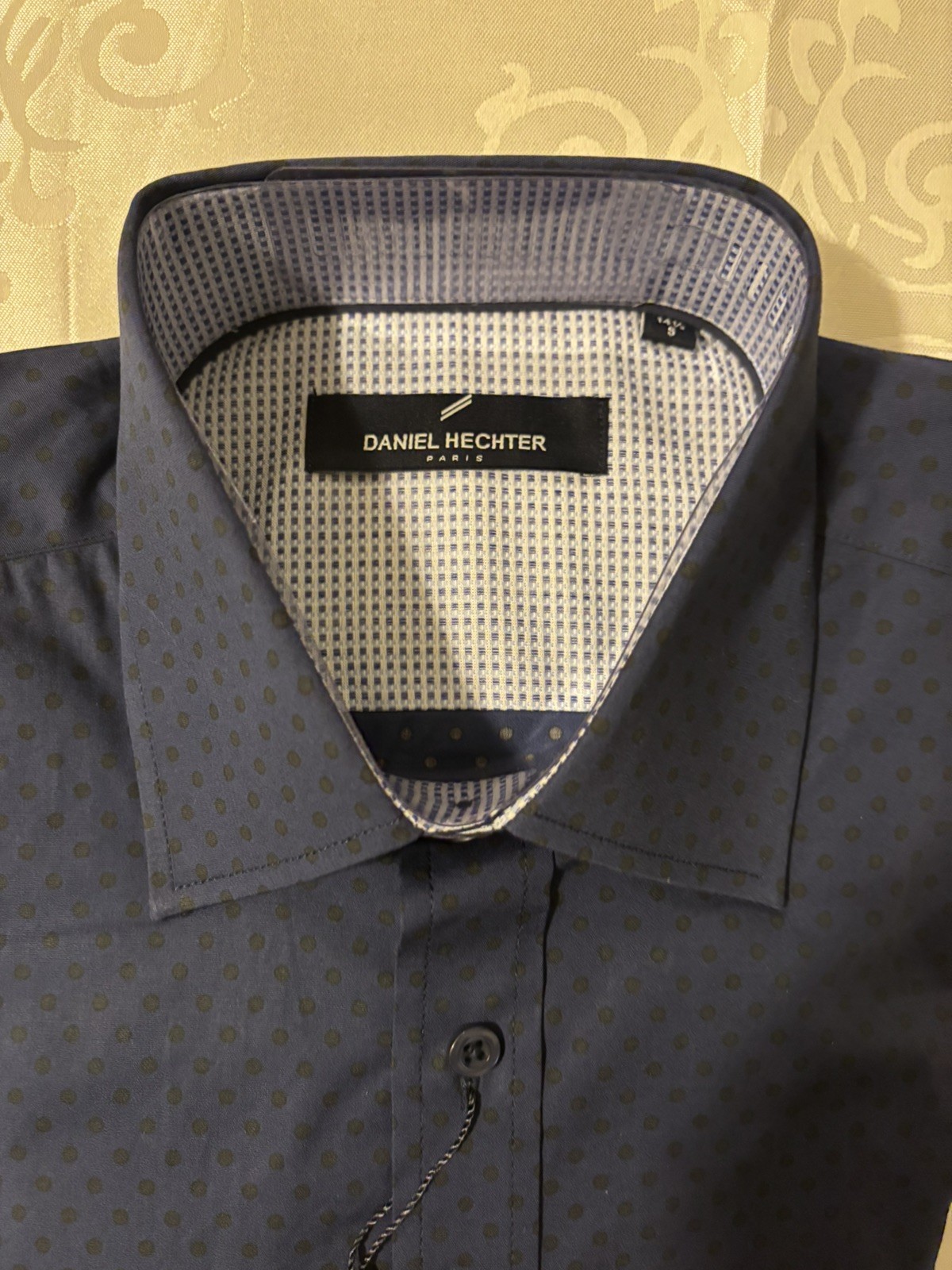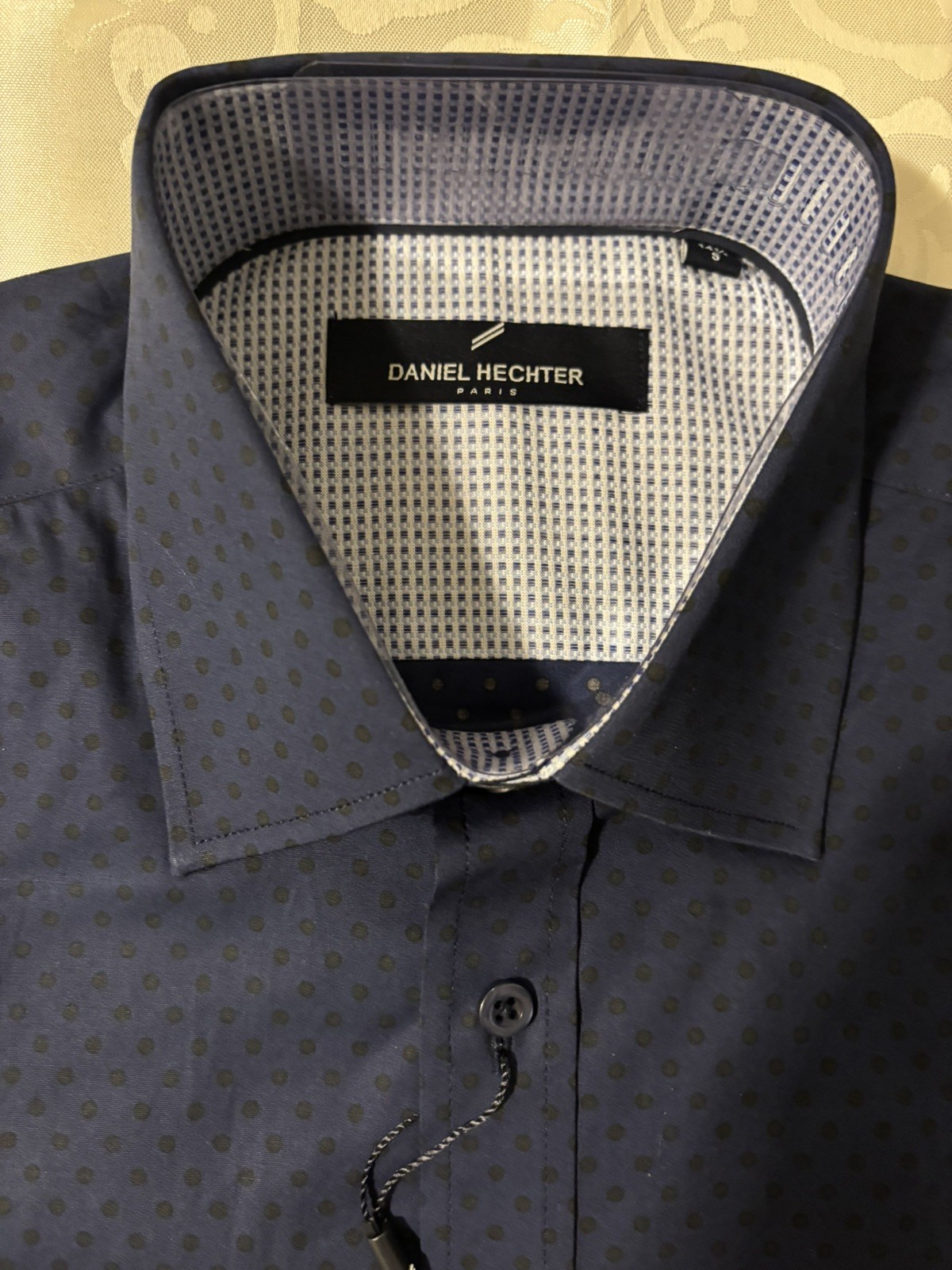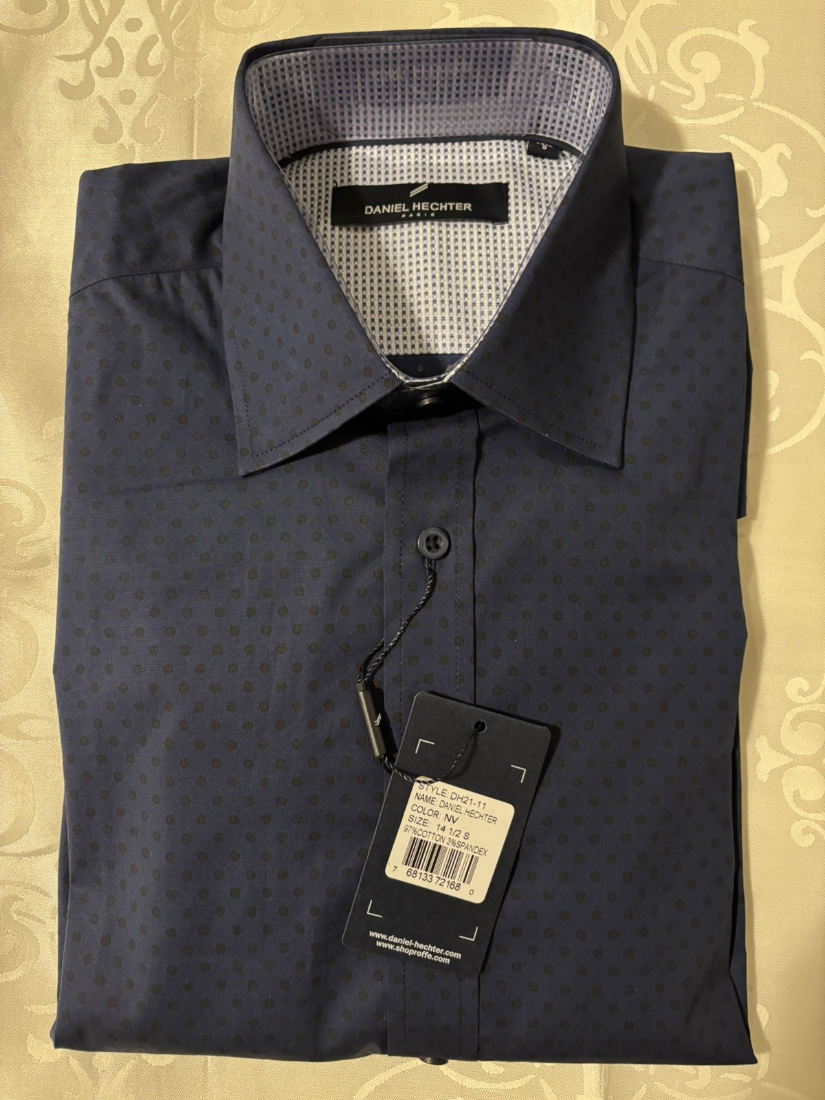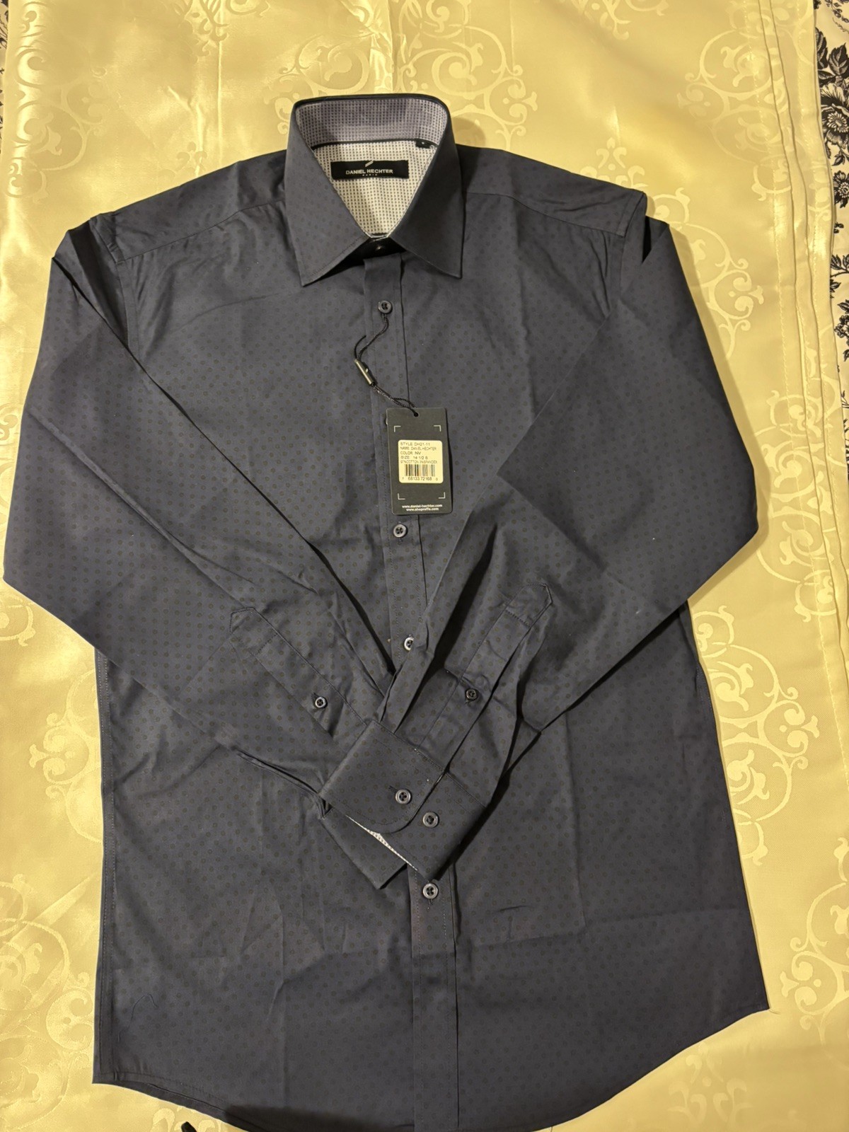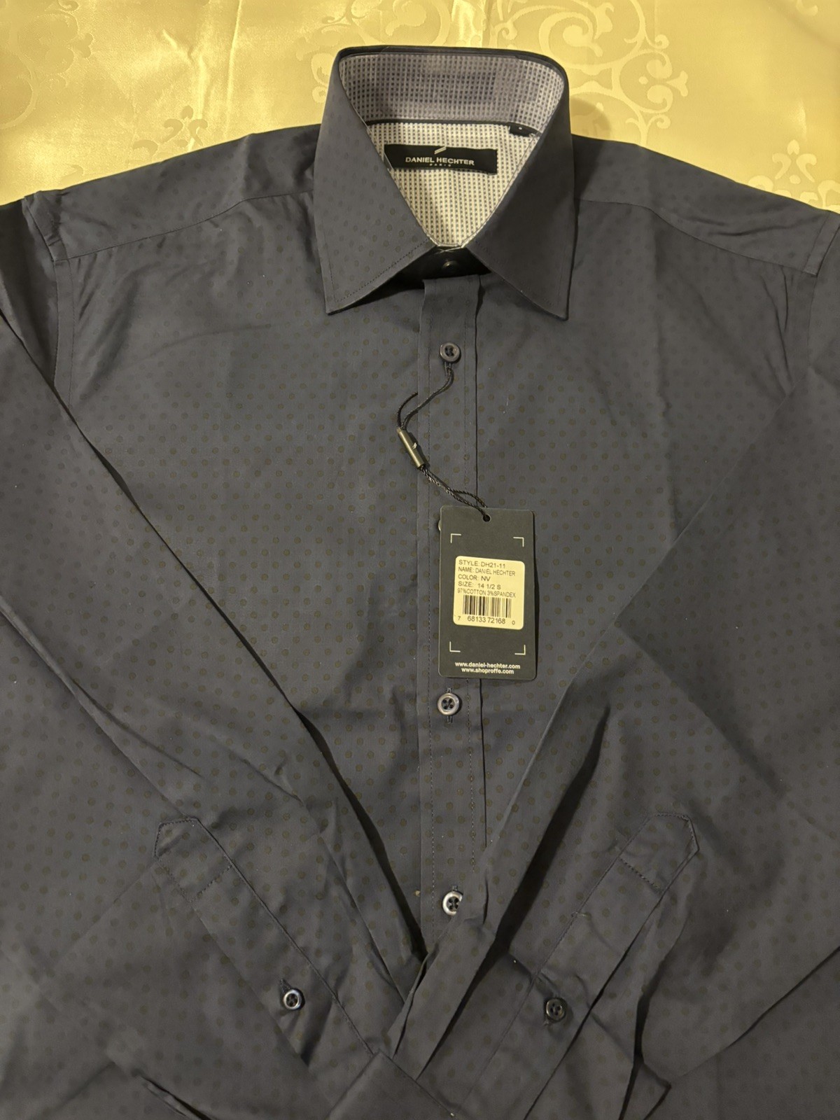 как выглядит DANIEL HECHTER PARIS Tonal Dot Non-Iron Stretch Dress Shirt in Navy Small фото