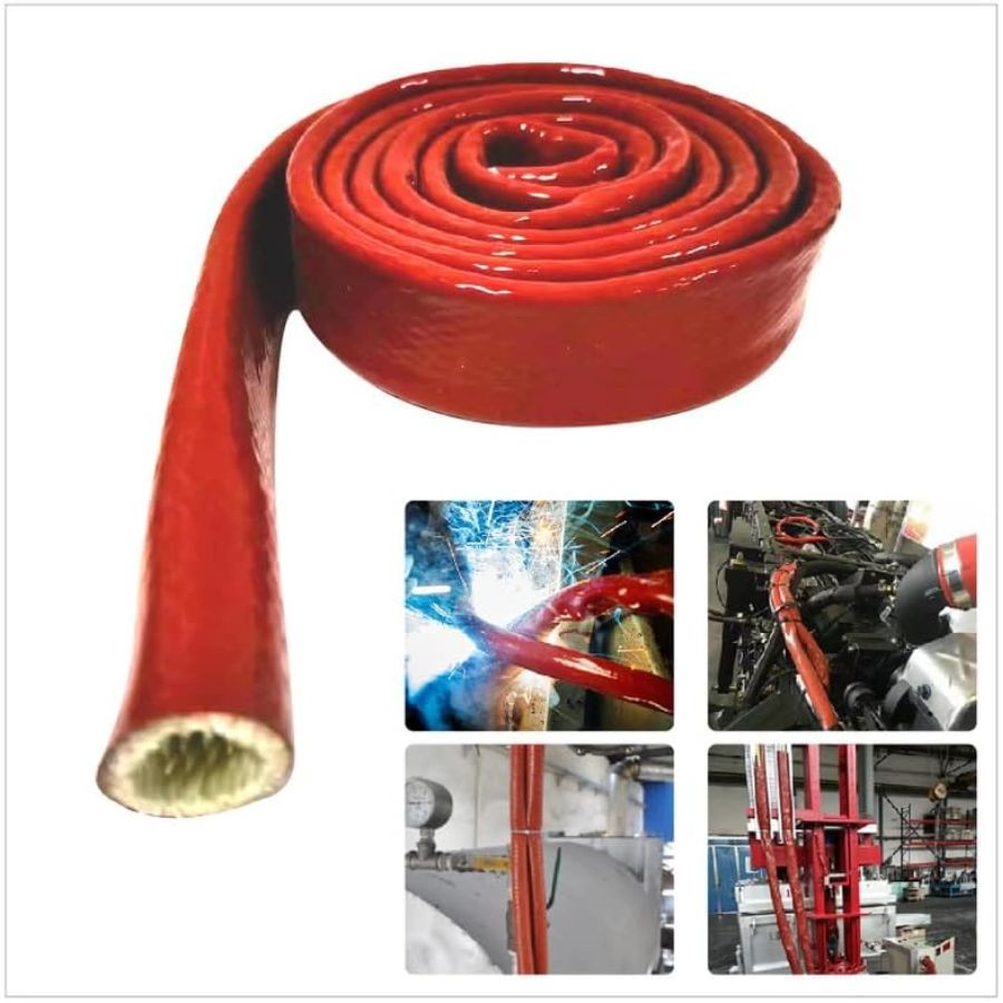 Insulation Heat Shielded Fire Thermo Armor Fire Sleeve Silicone Red 1/2ID x 5FT