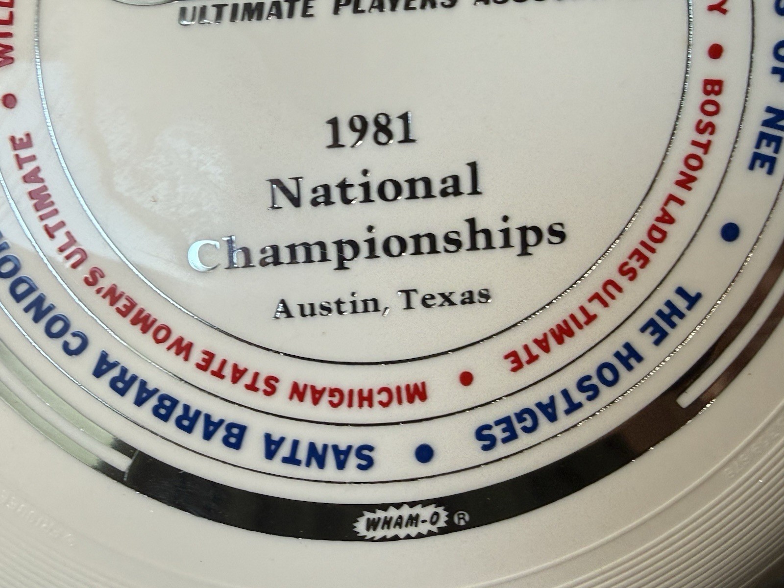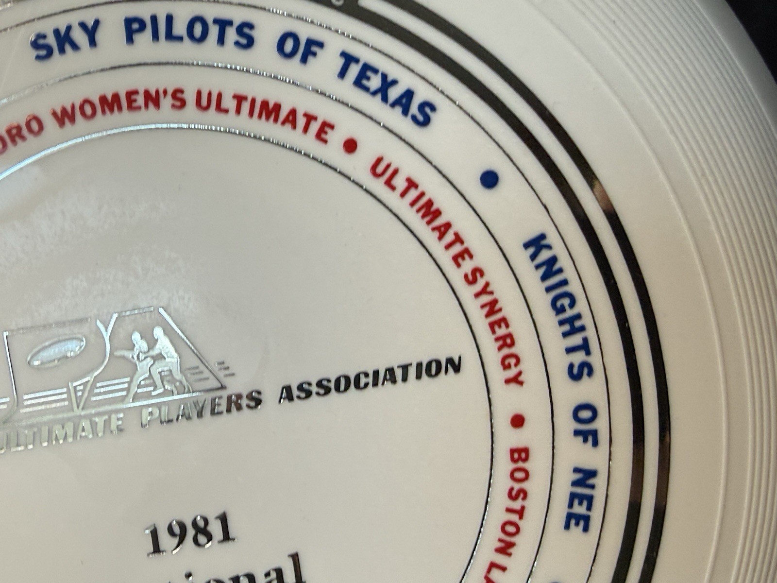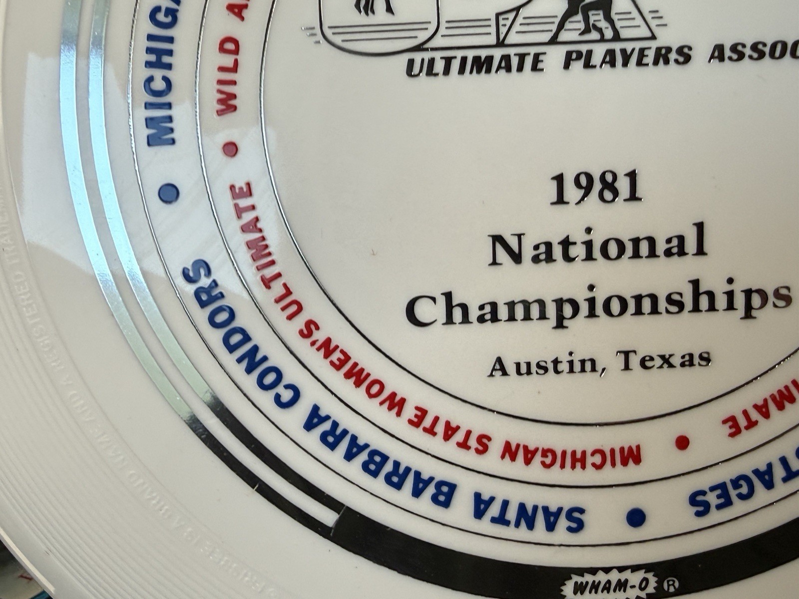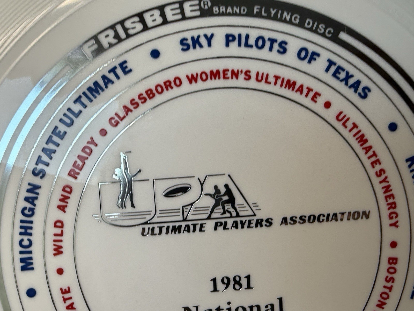 Wham-o Frisbee 165G 80E mold Ultimate Players Association 1981 Austin Texas w