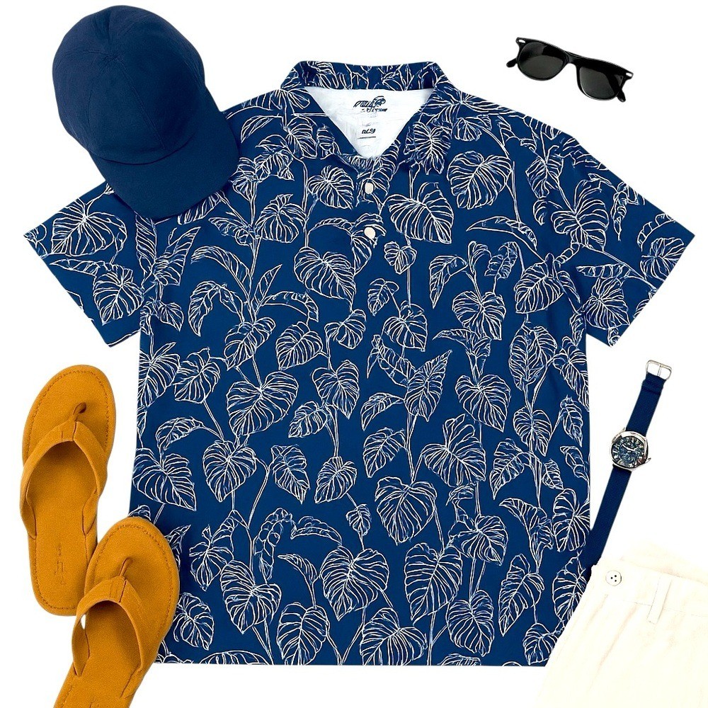 как выглядит Reyn Spooner Brrrr Performance Golf Sport Tech Navy Monstera Polo 3XL Cool Feel фото